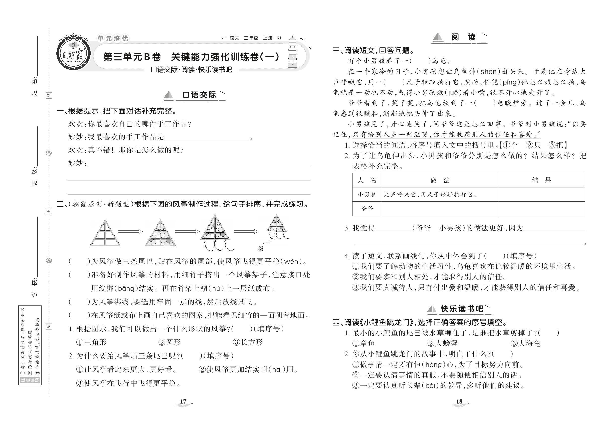 2021上册二年级语文人教版 第三单元B卷 关键能力强化训练卷(一)