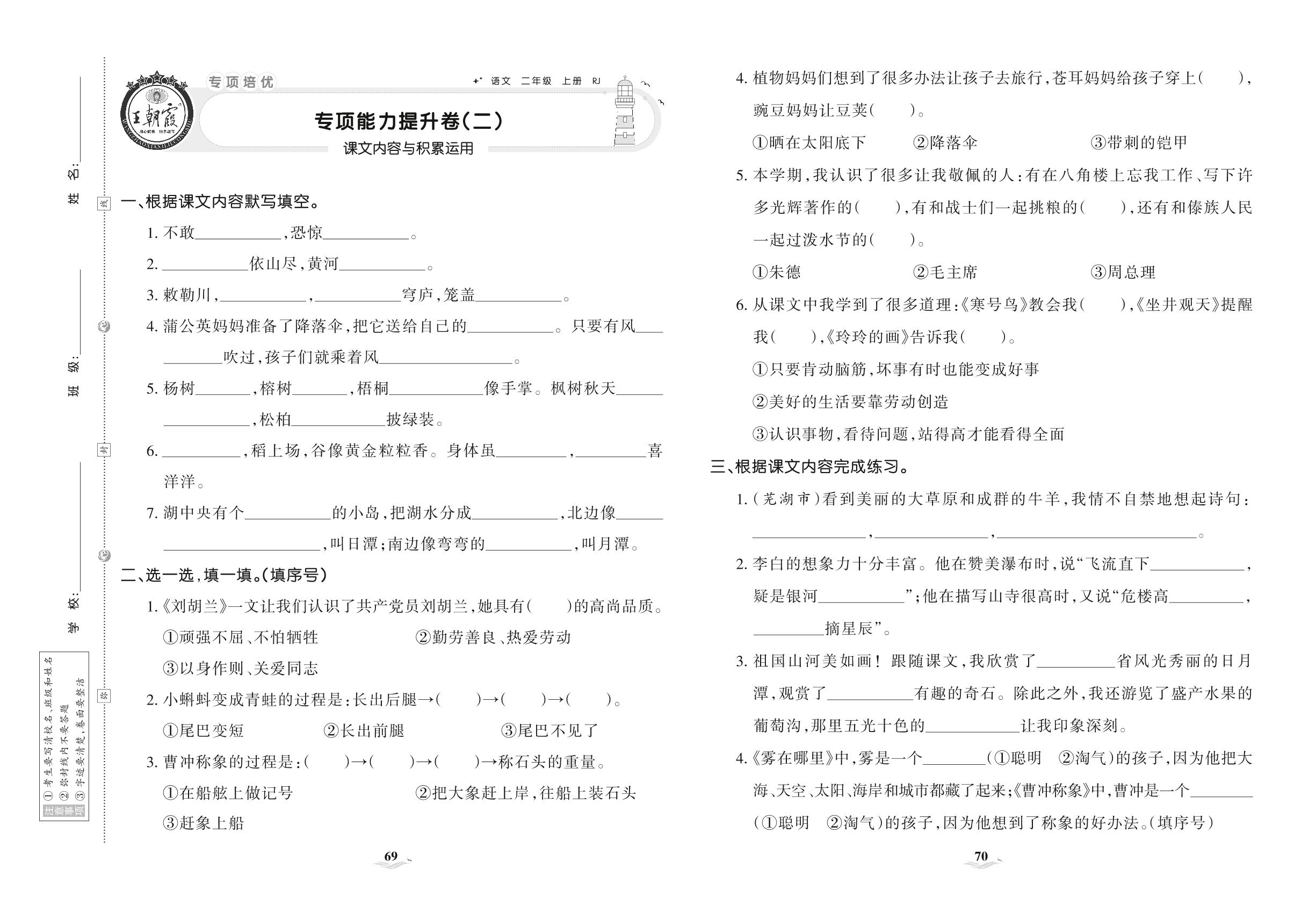 2021上册二年级语文人教版 专项能力提升卷(二) 课文内容与积累运用