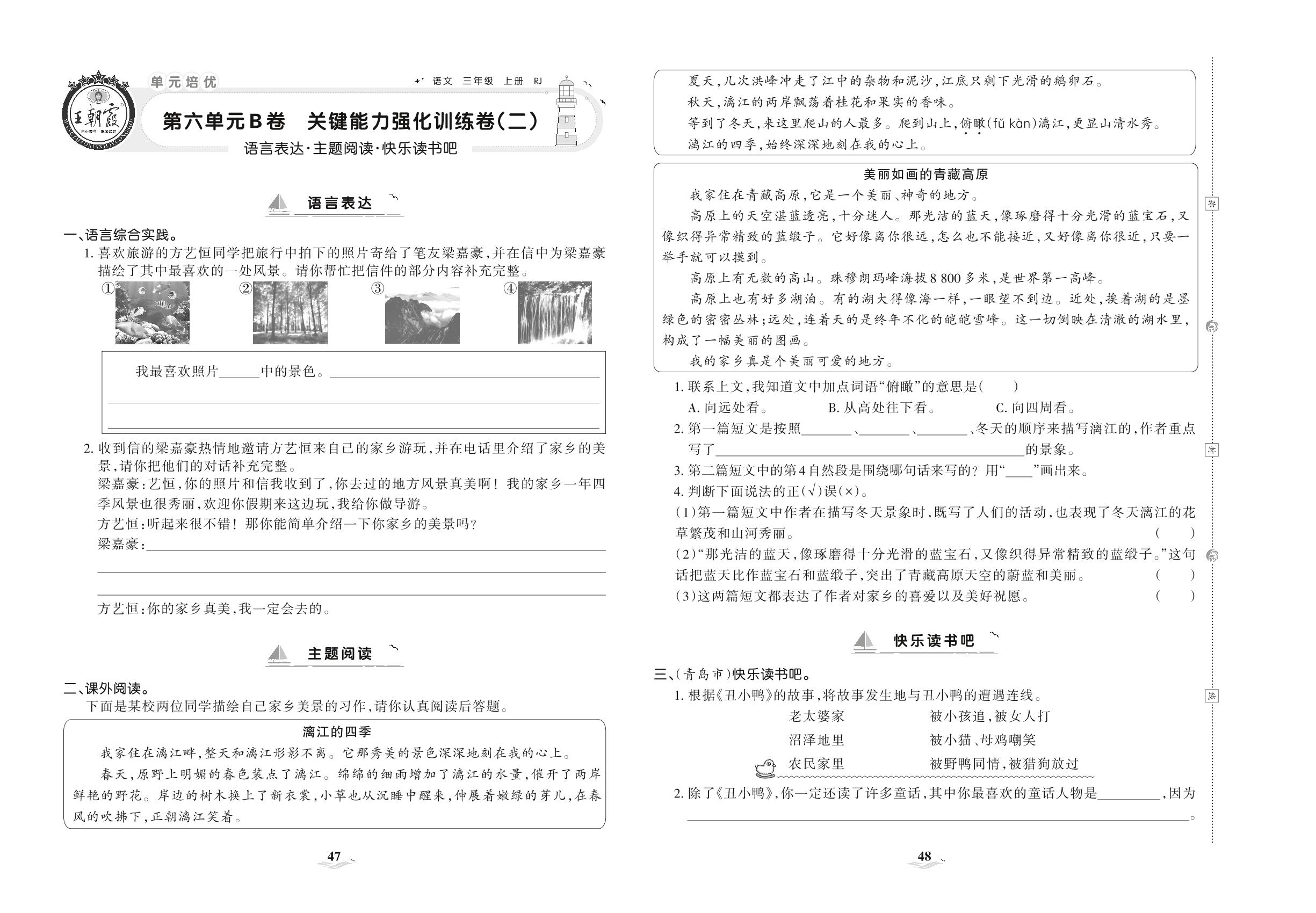 2021上册三年级语文人教版 第六单元B卷 关键能力强化训练卷(二)
