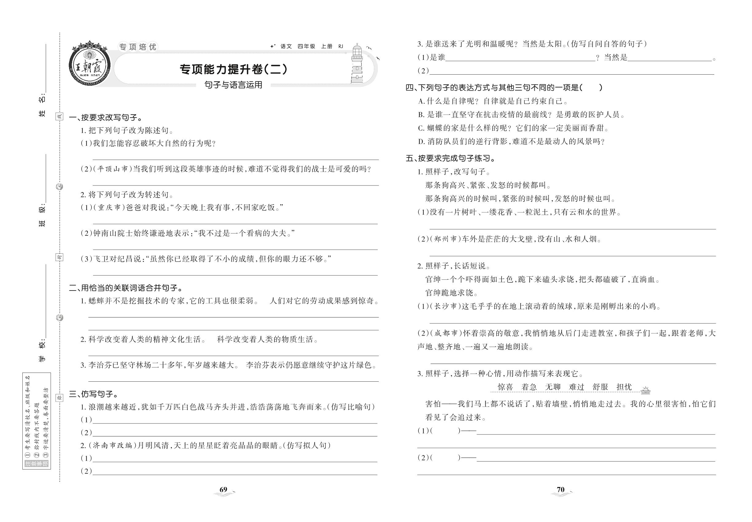 2021上册四年级语文人教版 专项能力提升卷(二) 句子与语言运用