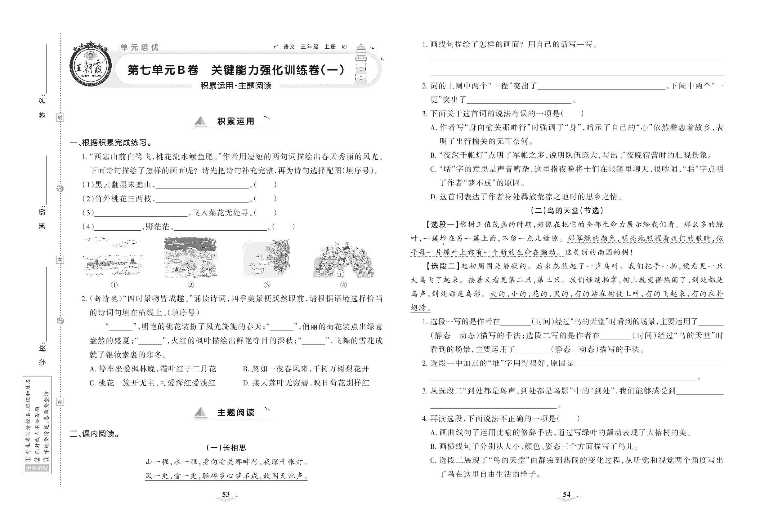 2021上册五年级语文人教版 第七单元B卷 关键能力强化训练卷(一)