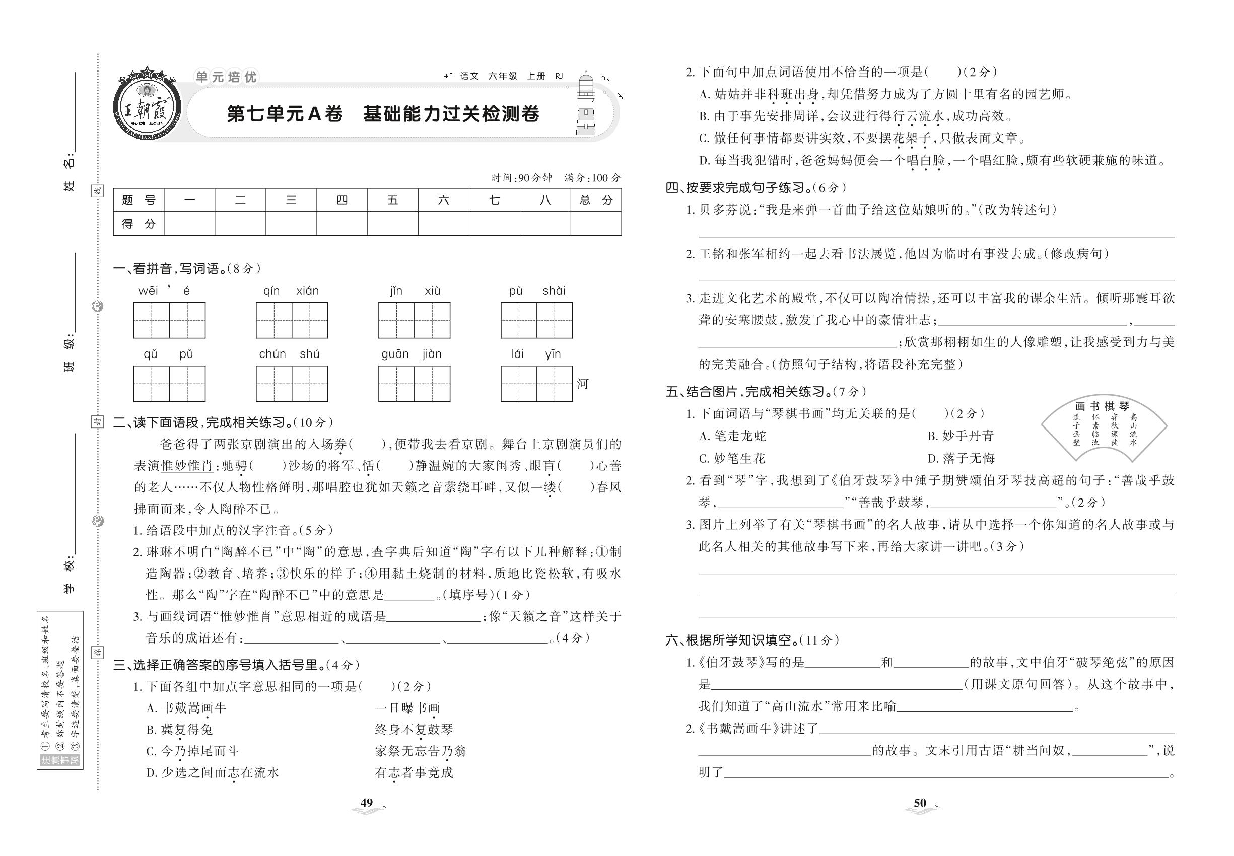 六年级语文人教版上册单元卷