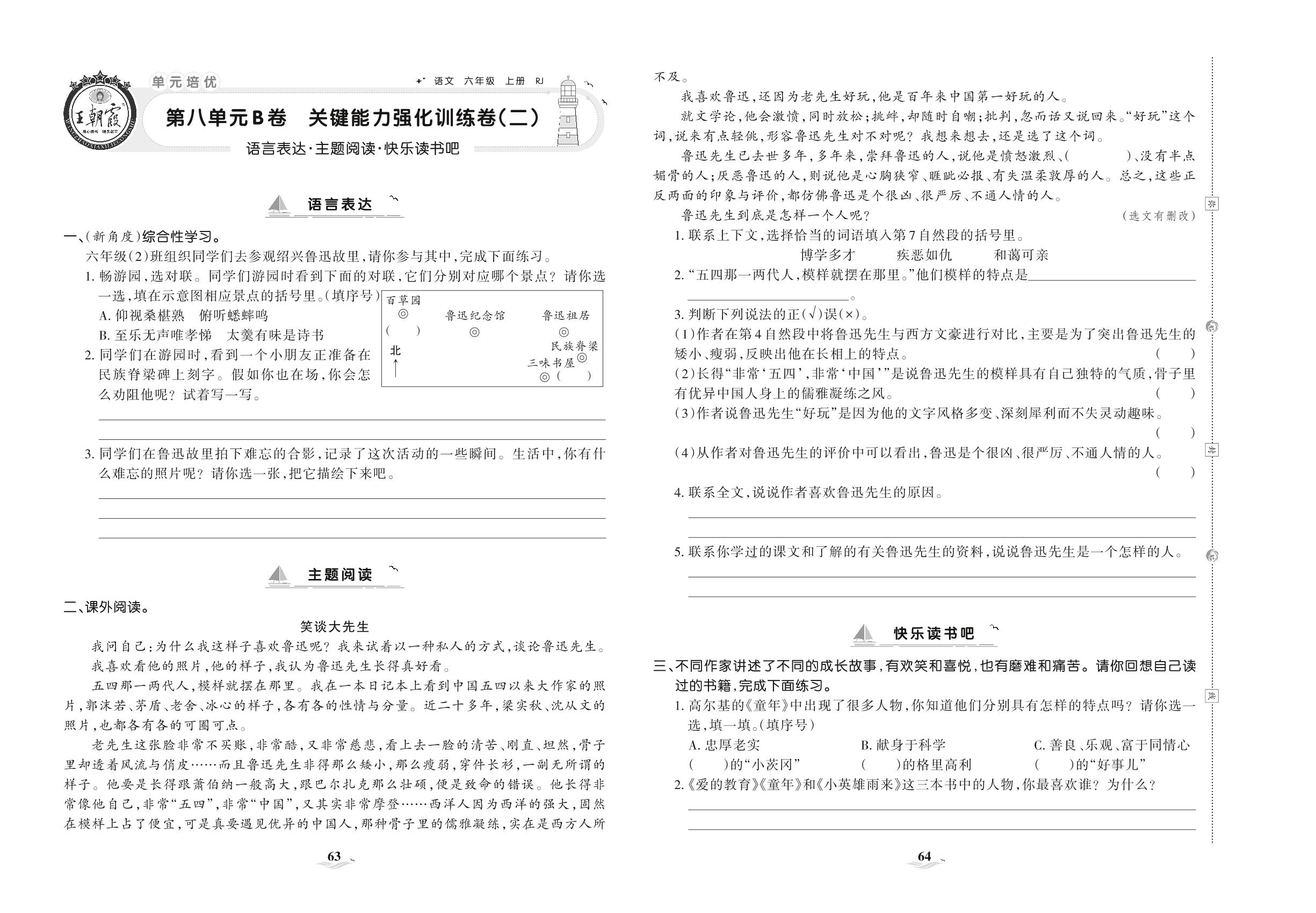 2021上册六年级语文人教版 第八单元B卷 关键能力强化训练卷(二)