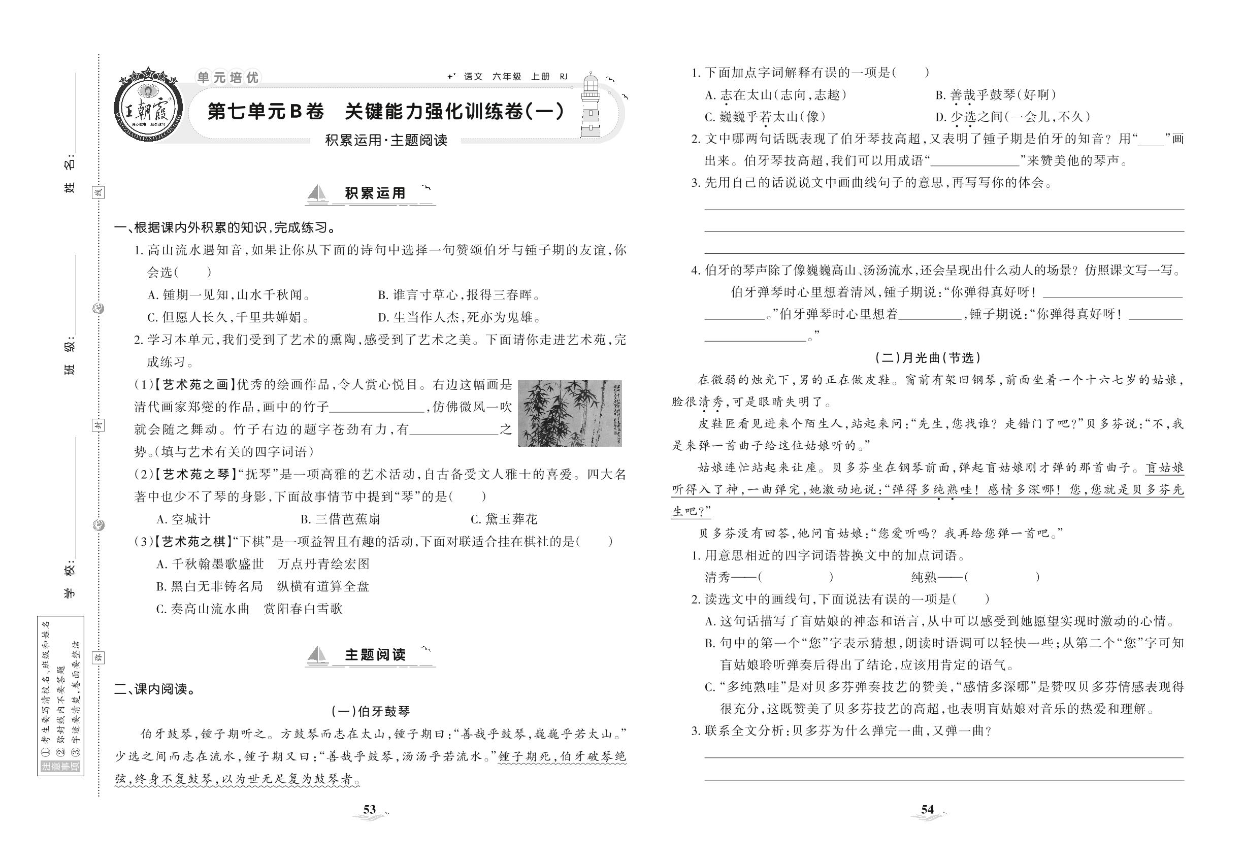 2021上册六年级语文人教版 第七单元B卷 关键能力强化训练卷(一)