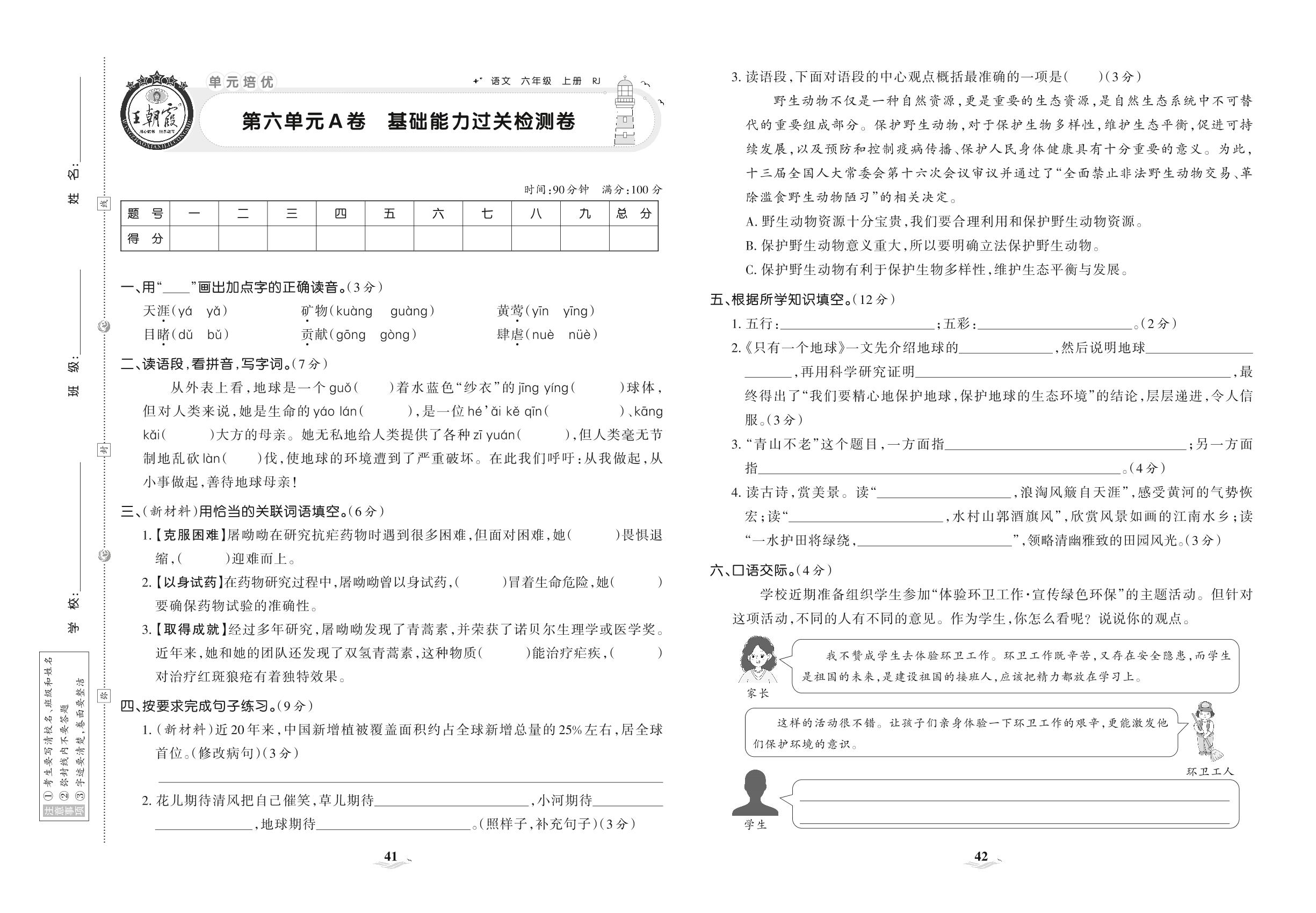 六年级语文人教版上册单元卷