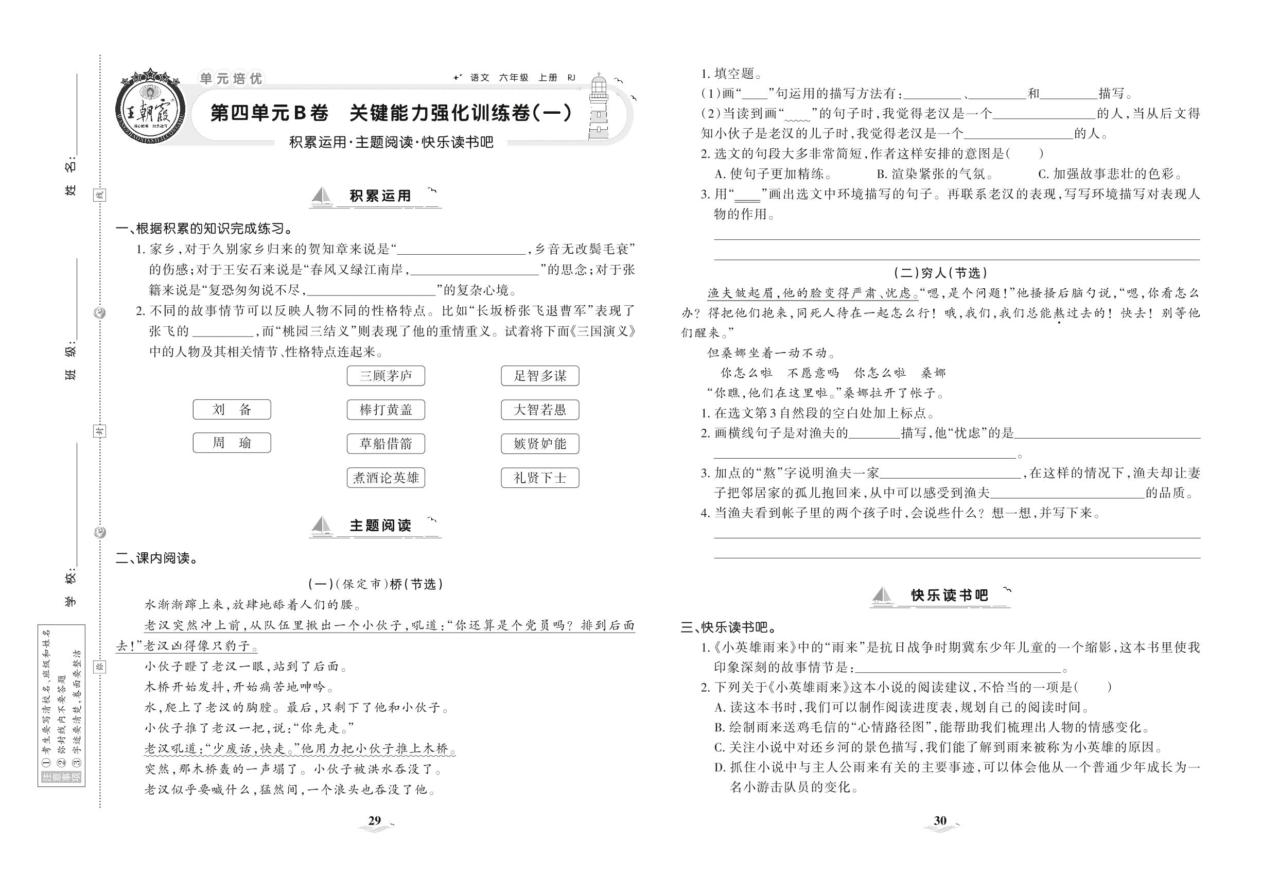 2021上册六年级语文人教版 第四单元B卷 关键能力强化训练卷(一)