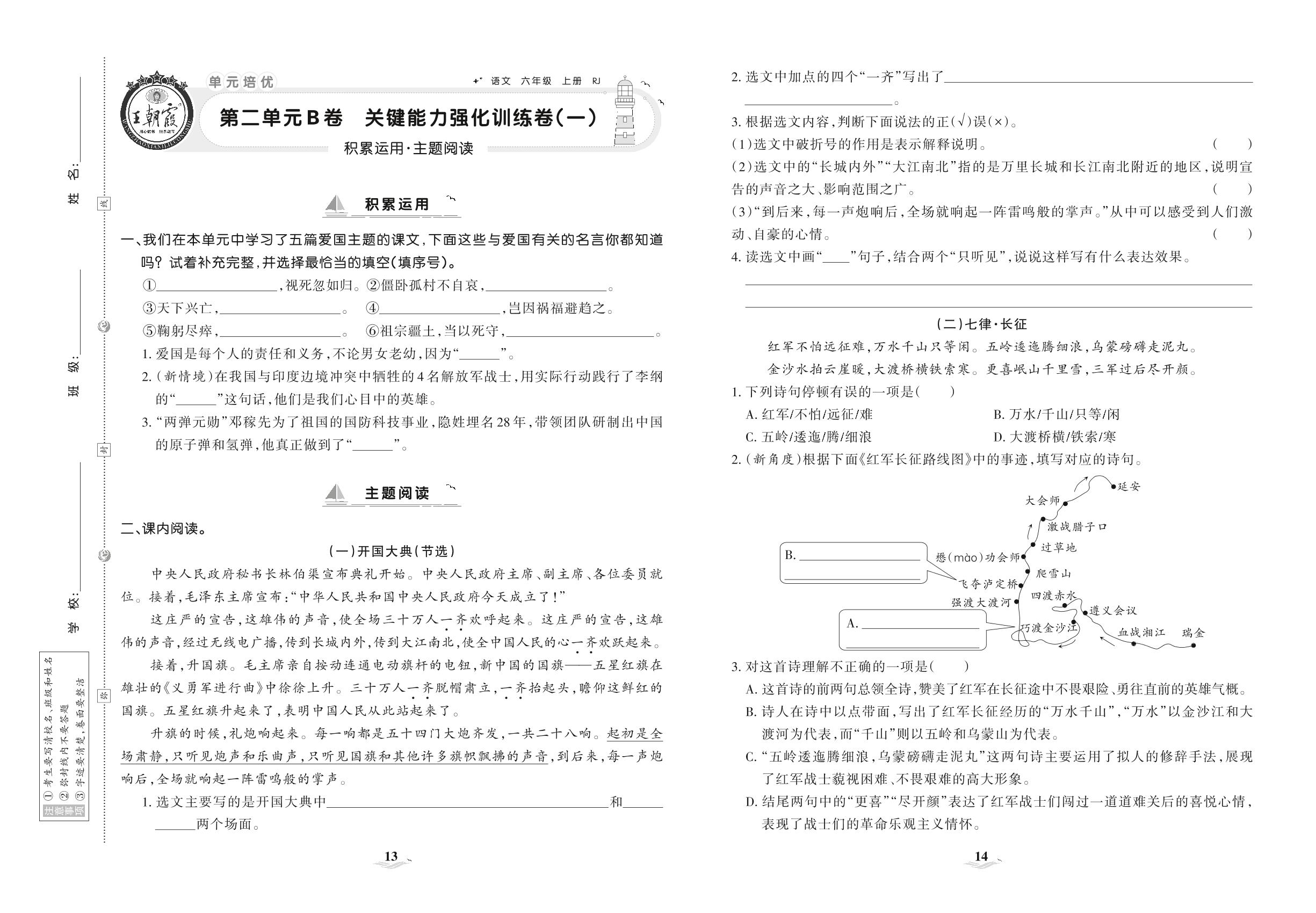 2021上册六年级语文人教版 第二单元B卷 关键能力强化训练卷(一)