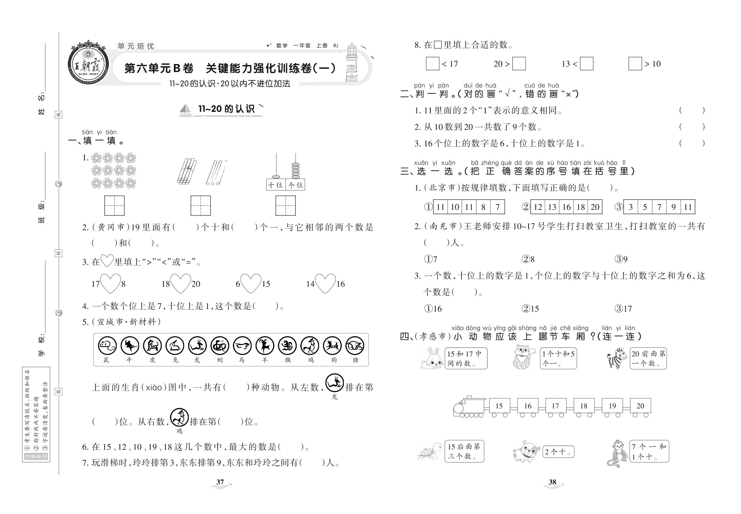 2021上册一年级数学人教版 第六单元B卷 关键能力强化训练卷(一)