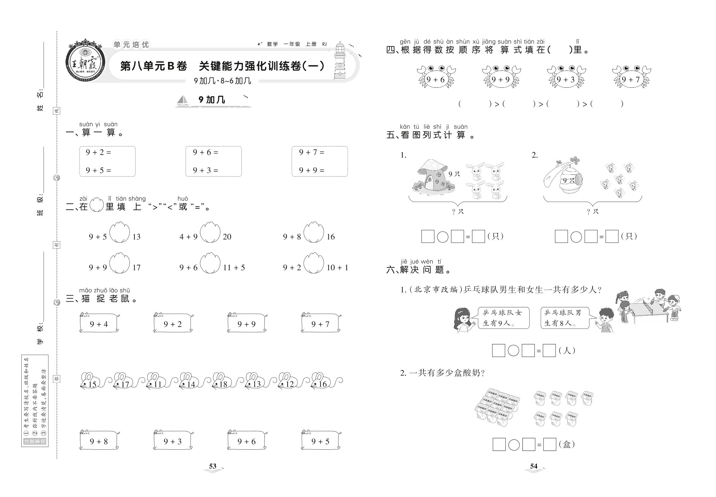 2021上册一年级数学人教版 第八单元B卷 关键能力强化训练卷(一)