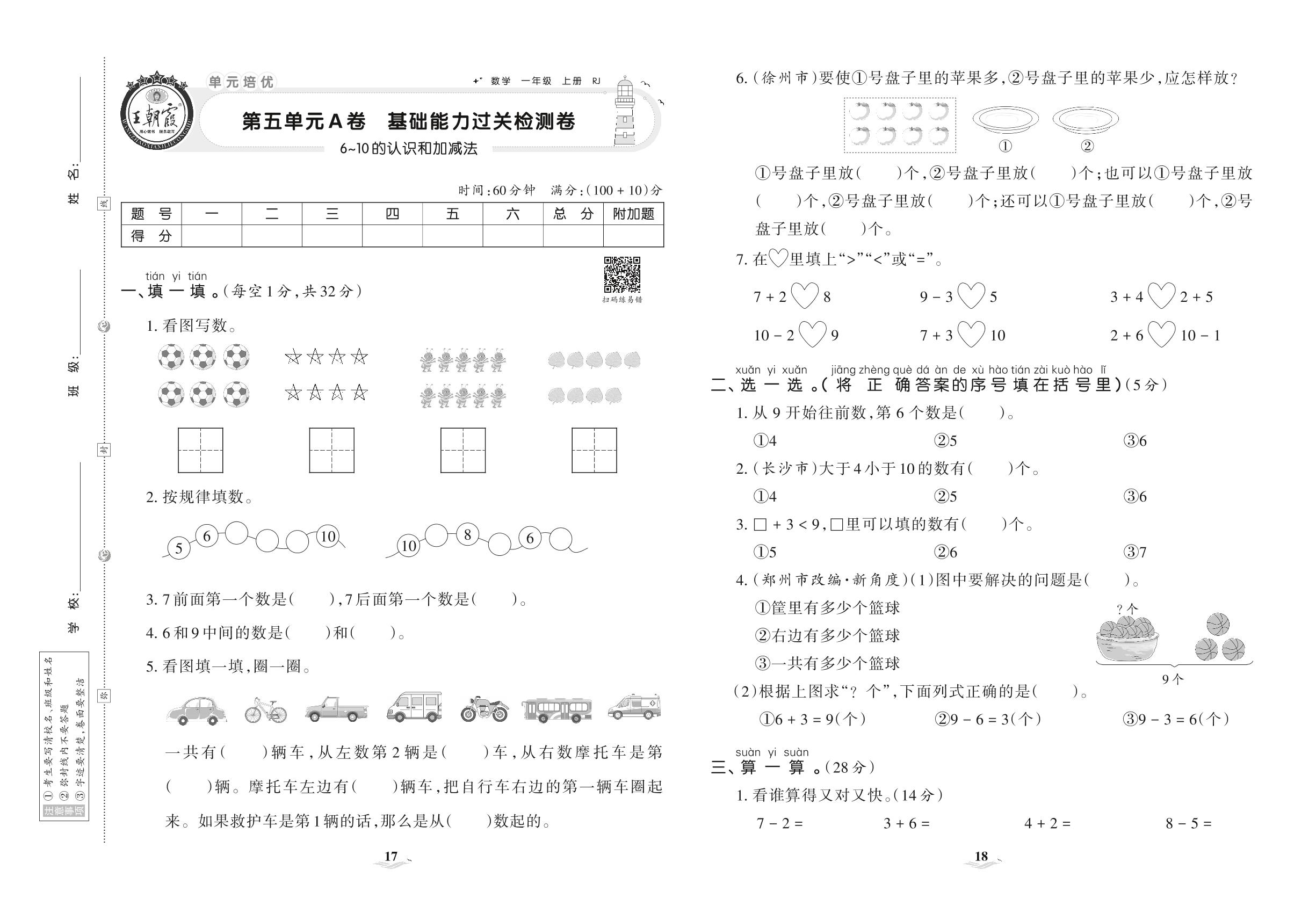 2021上册一年级数学人教版 第五单元A卷 基础能力过关检测卷