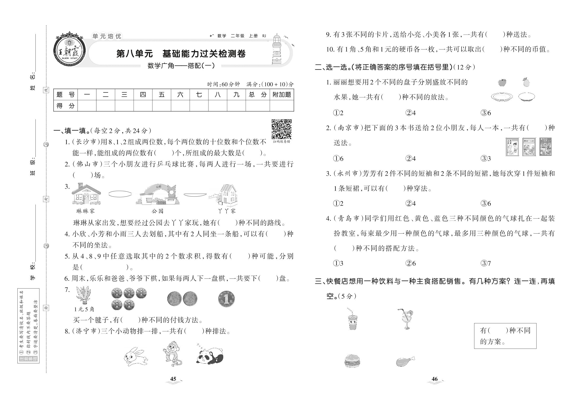 2021上册二年级数学人教版 第八单元 基础能力过关检测卷