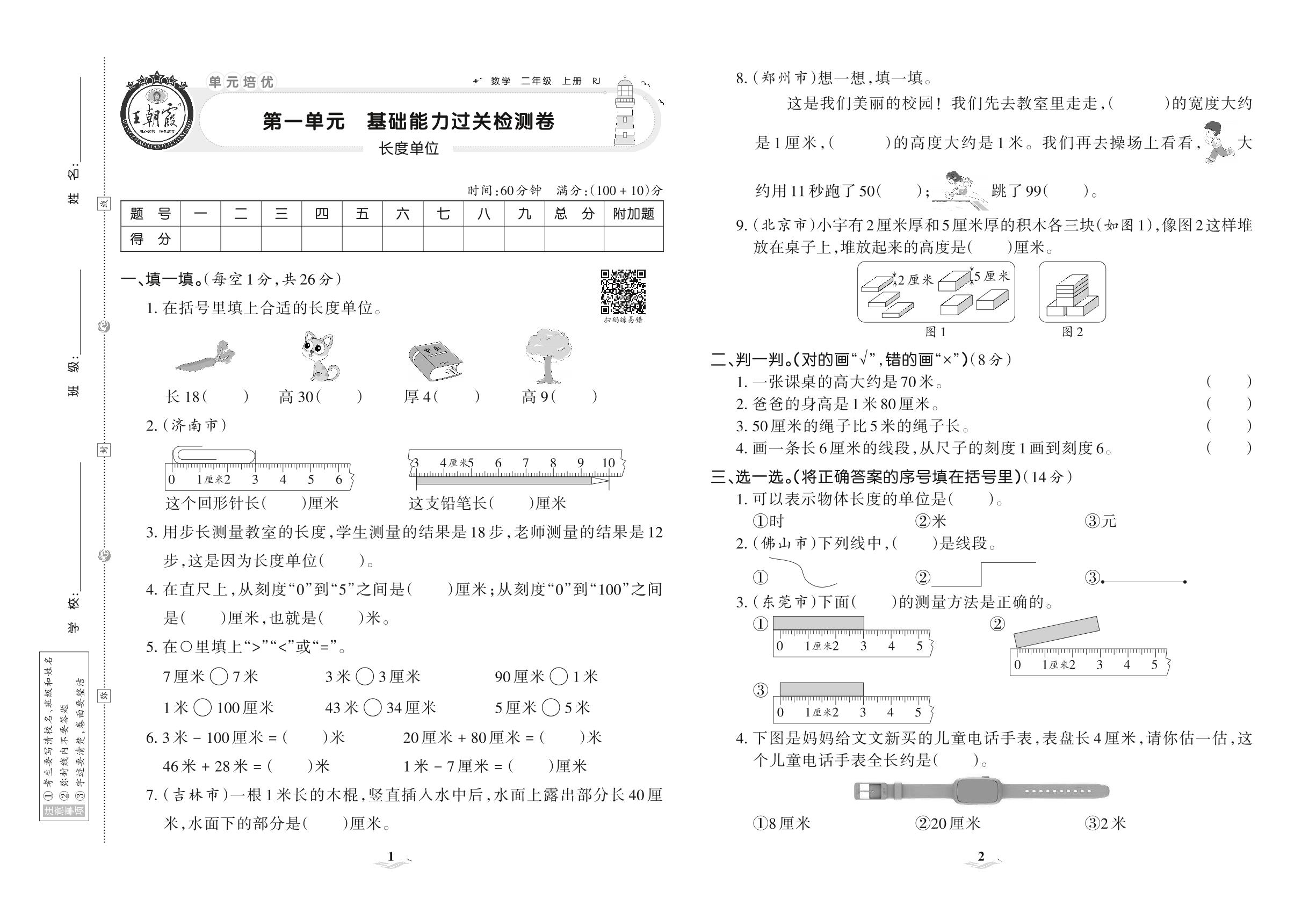 二年级数学人教版上册单元卷