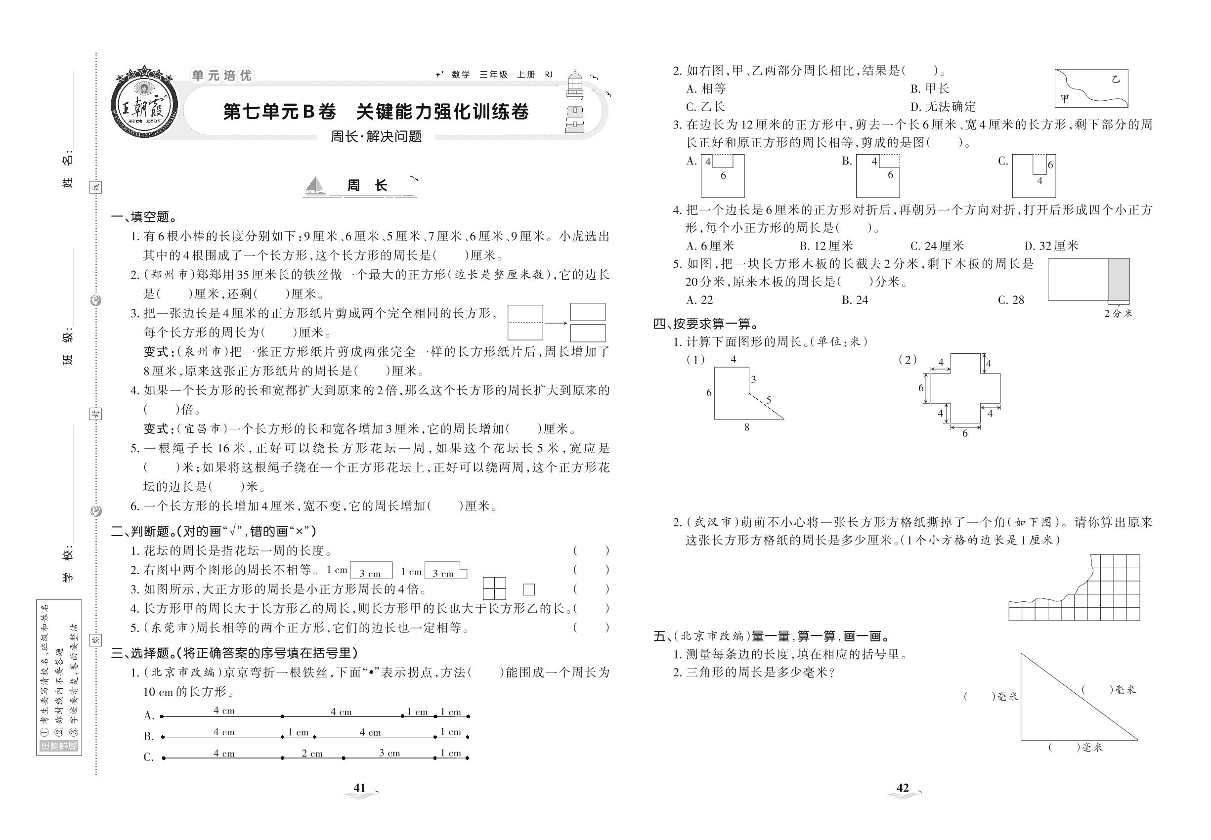 2021上册三年级数学人教版 第七单元B卷 关键能力强化训练卷