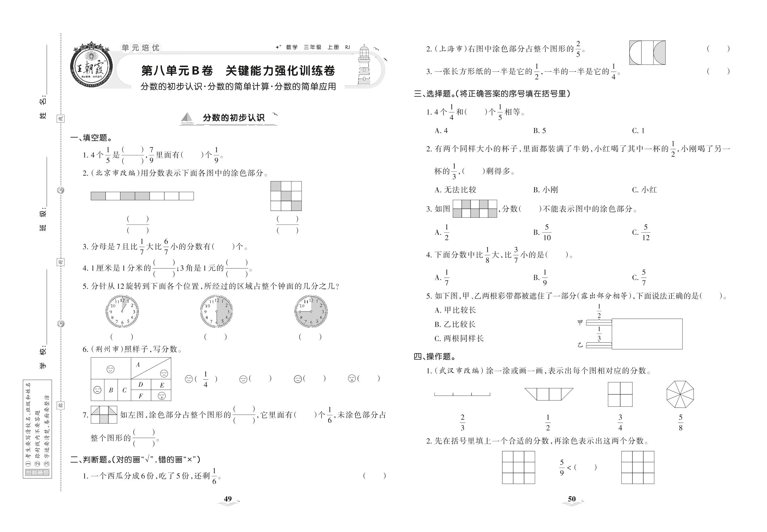 2021上册三年级数学人教版 第八单元B卷 关键能力强化训练卷