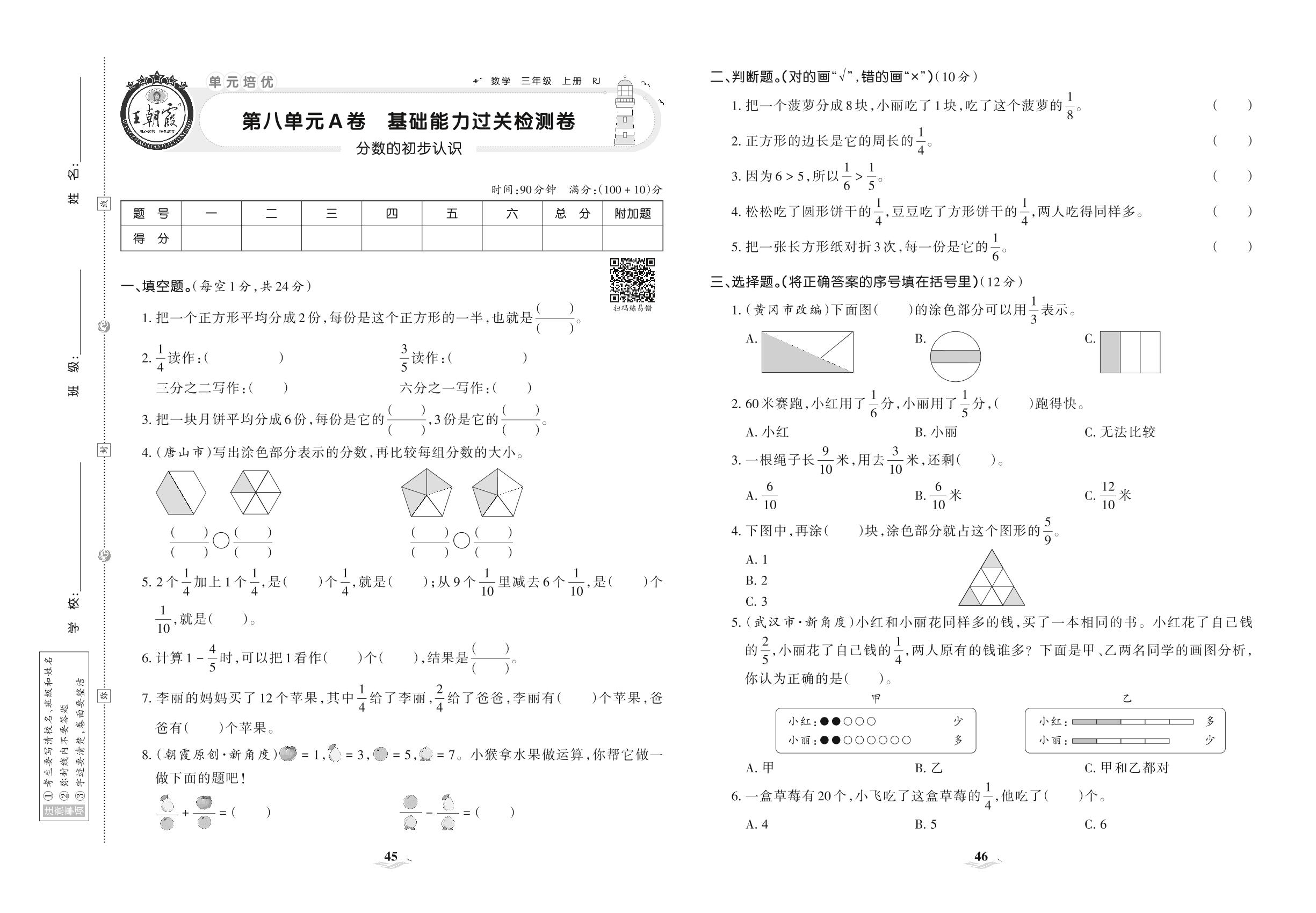 2021上册三年级数学人教版 第八单元A卷 基础能力过关检测卷
