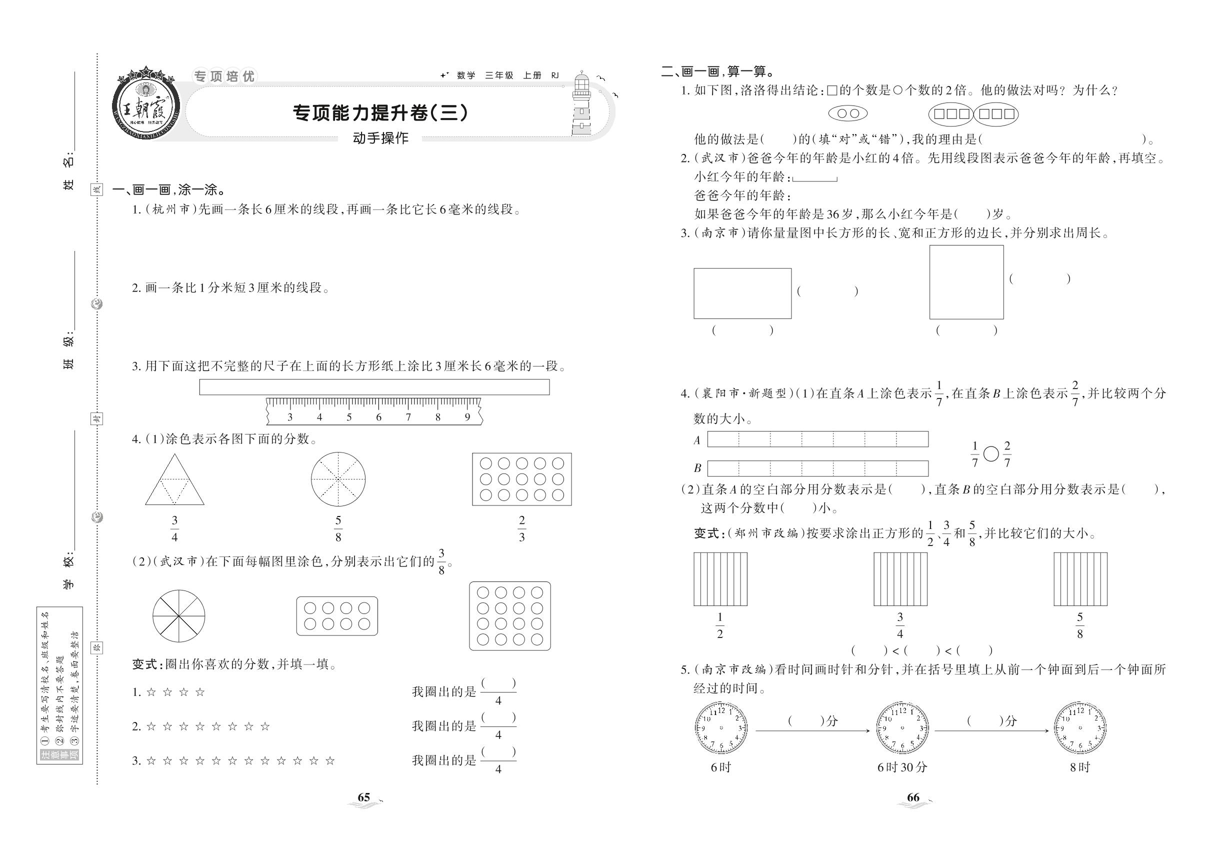 2021上册三年级数学人教版 专项能力提升卷(三) 动手操作