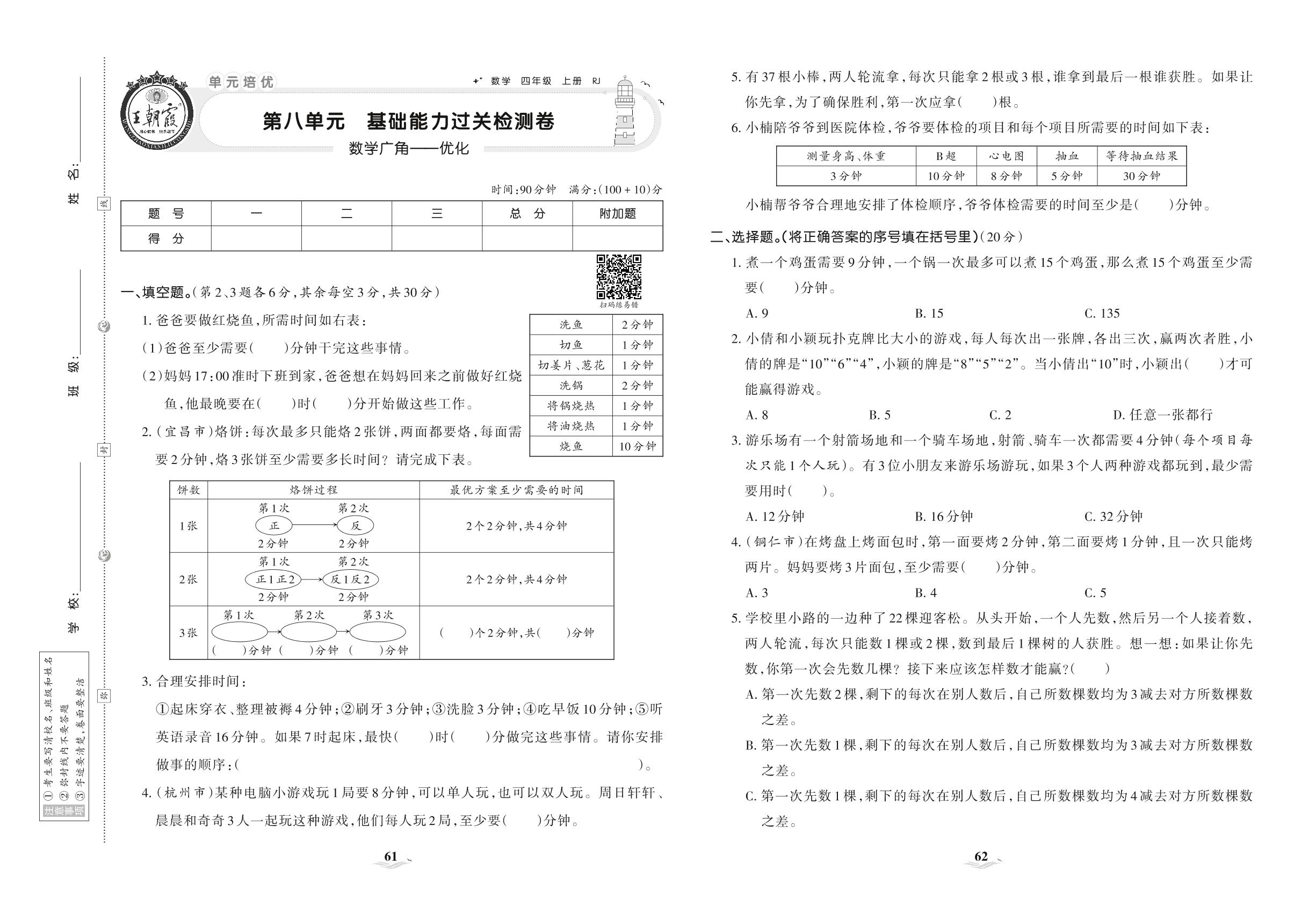 2021上册四年级数学人教版 第八单元 基础能力过关检测卷