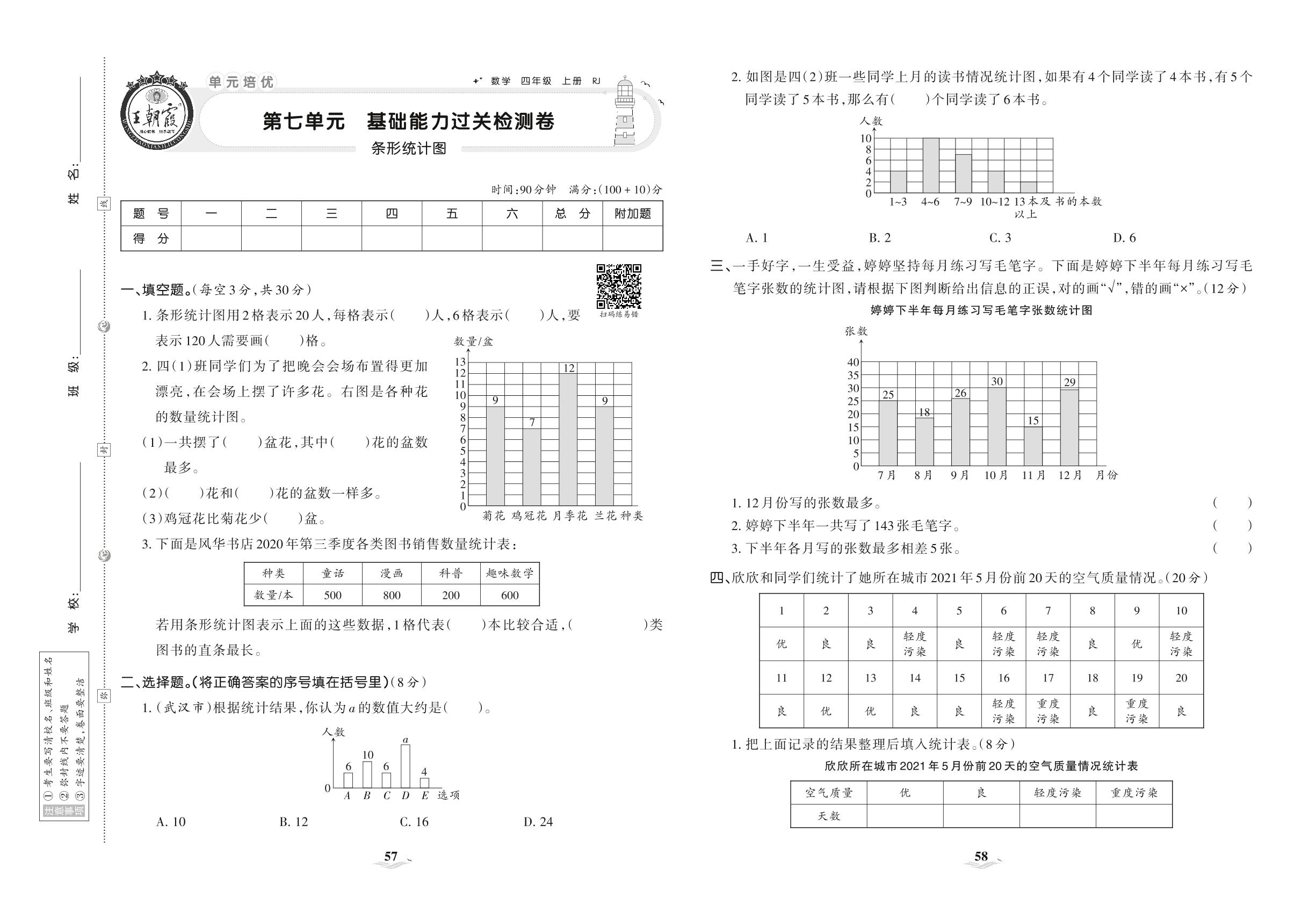 2021上册四年级数学人教版 第七单元 基础能力过关检测卷