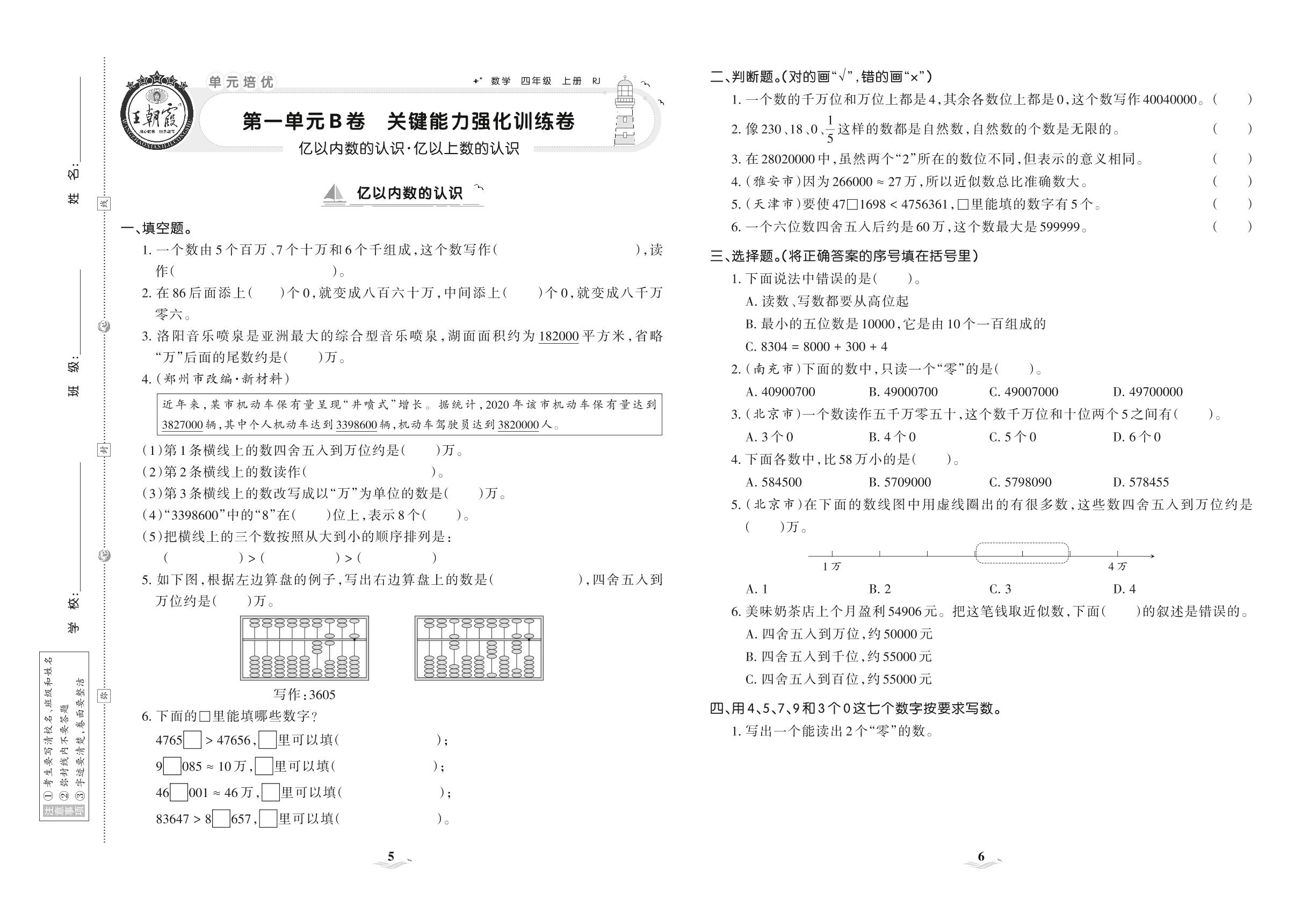 2021上册四年级数学人教版 第一单元B卷 关键能力强化训练卷