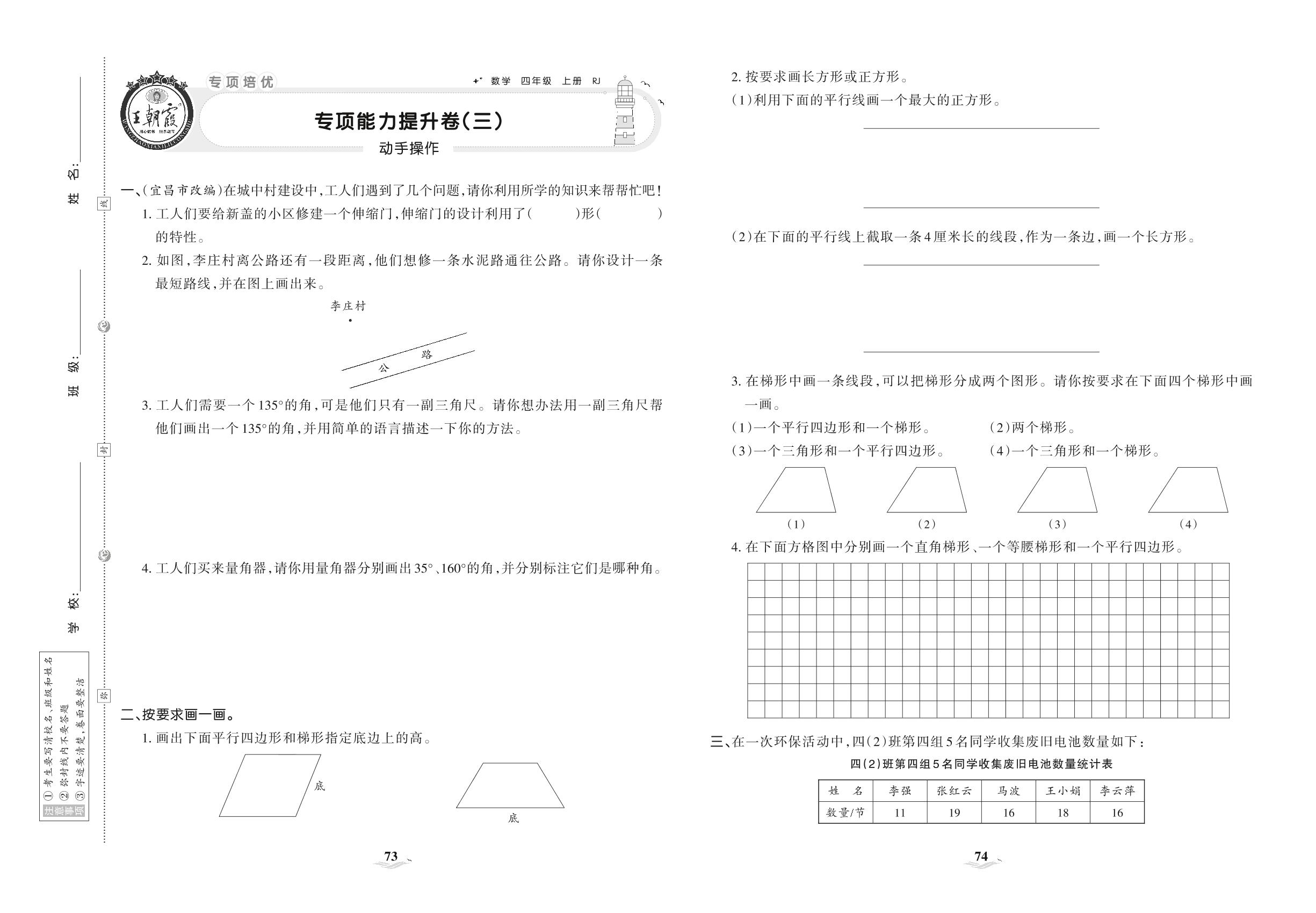 2021上册四年级数学人教版 专项能力提升卷(三) 动手操作