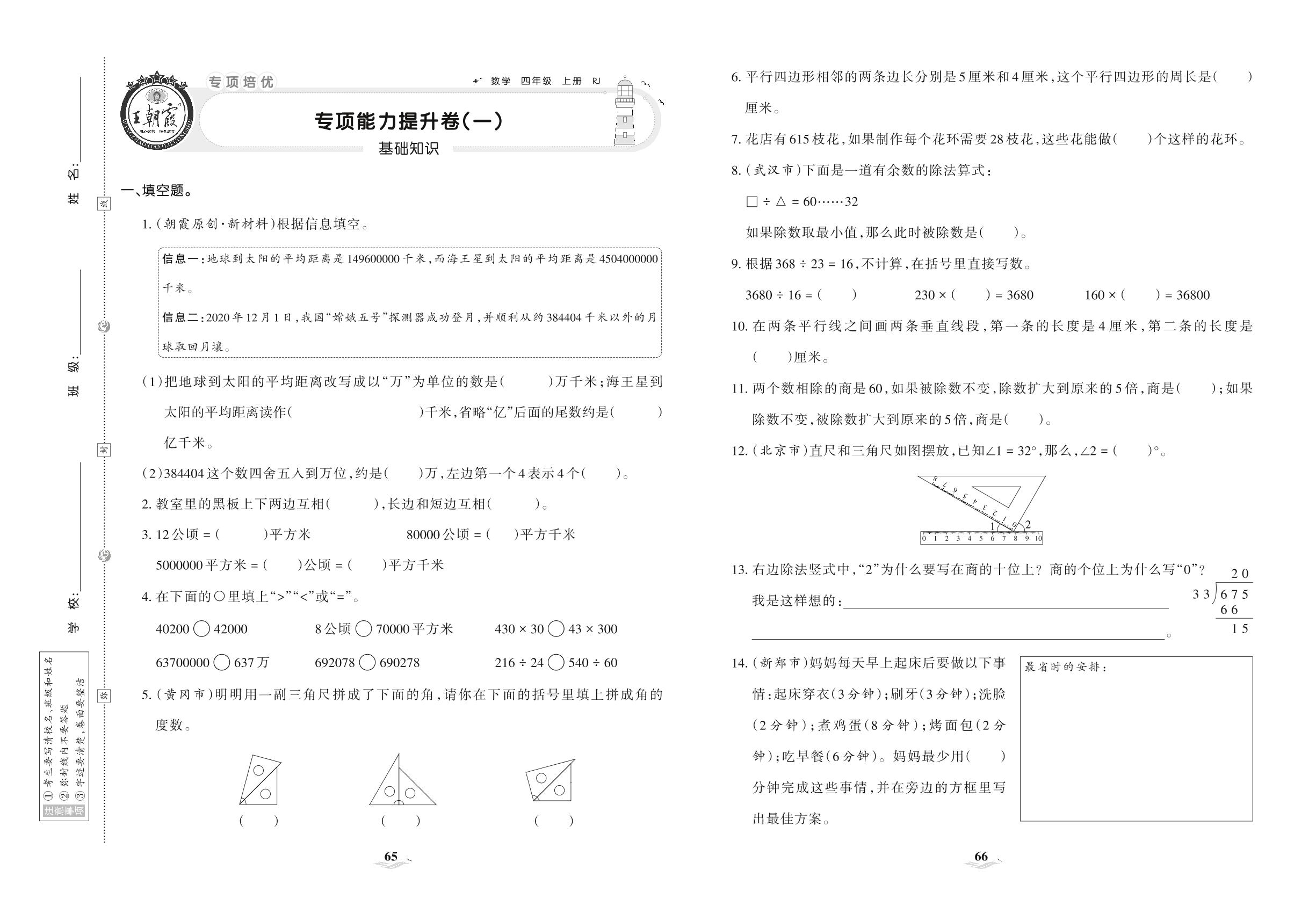 2021上册四年级数学人教版 专项能力提升卷(一) 基础知识
