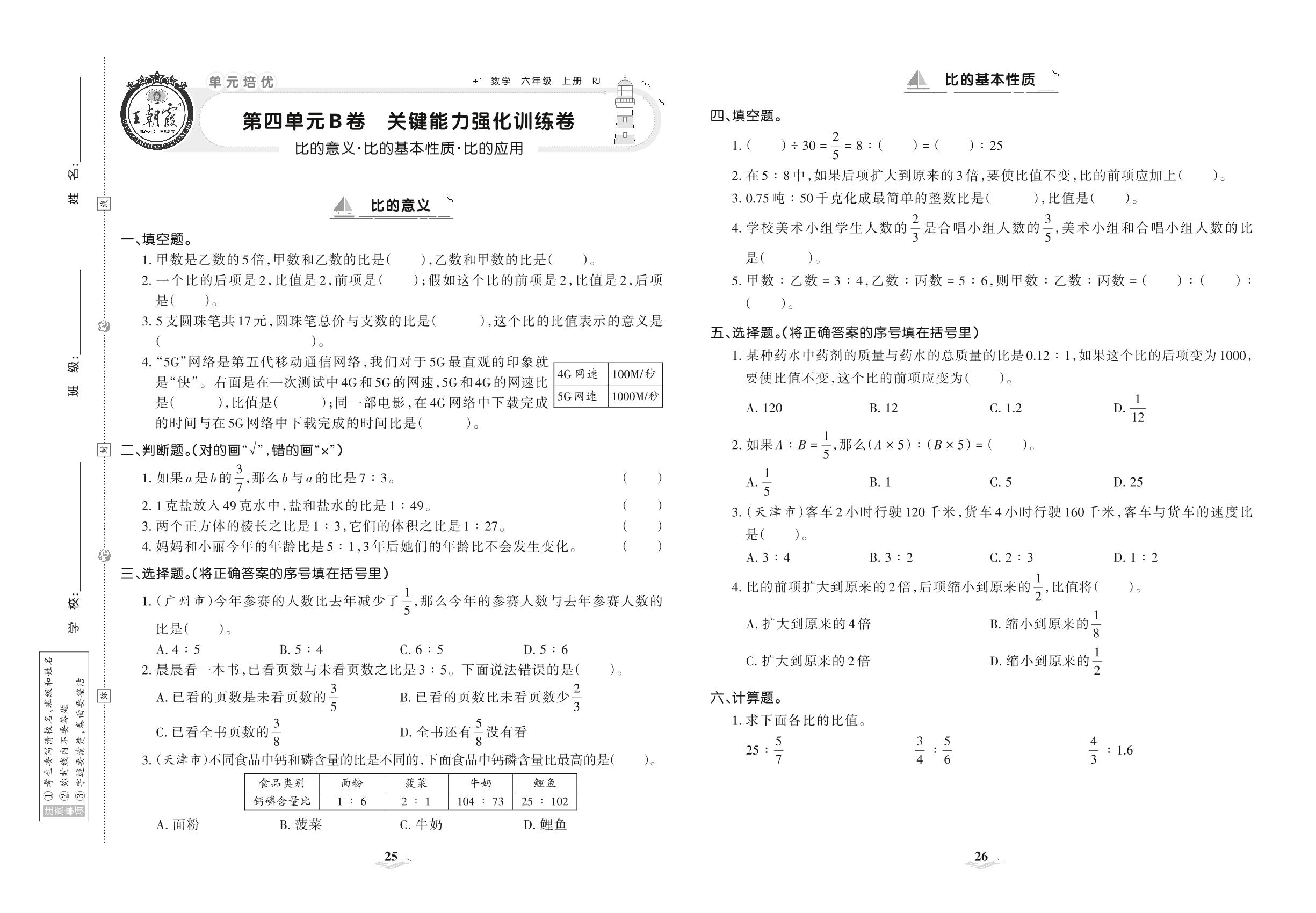 2021上册六年级数学人教版 第四单元B卷 关键能力强化训练卷