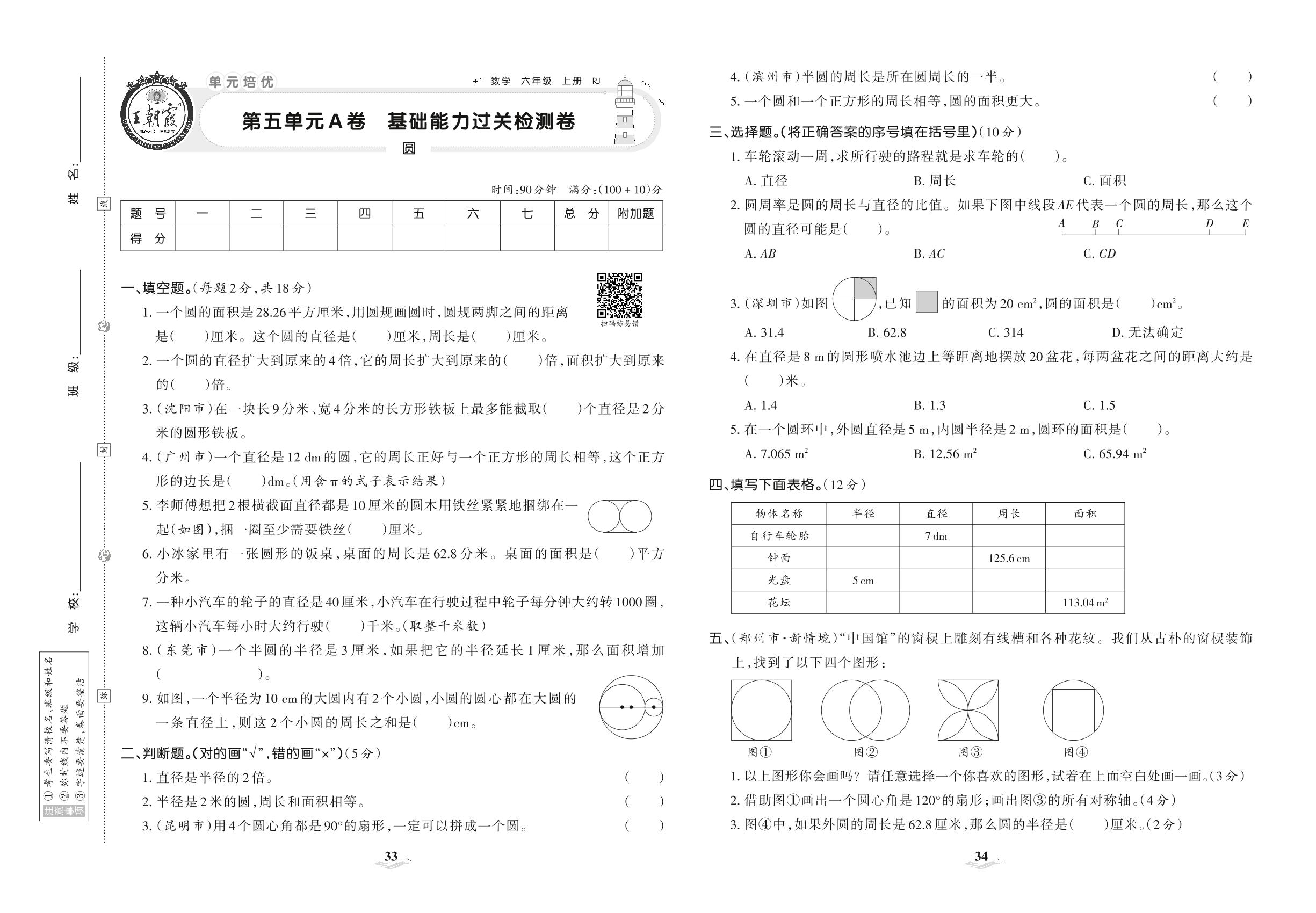 2021上册六年级数学人教版 第五单元A卷 基础能力过关检测卷
