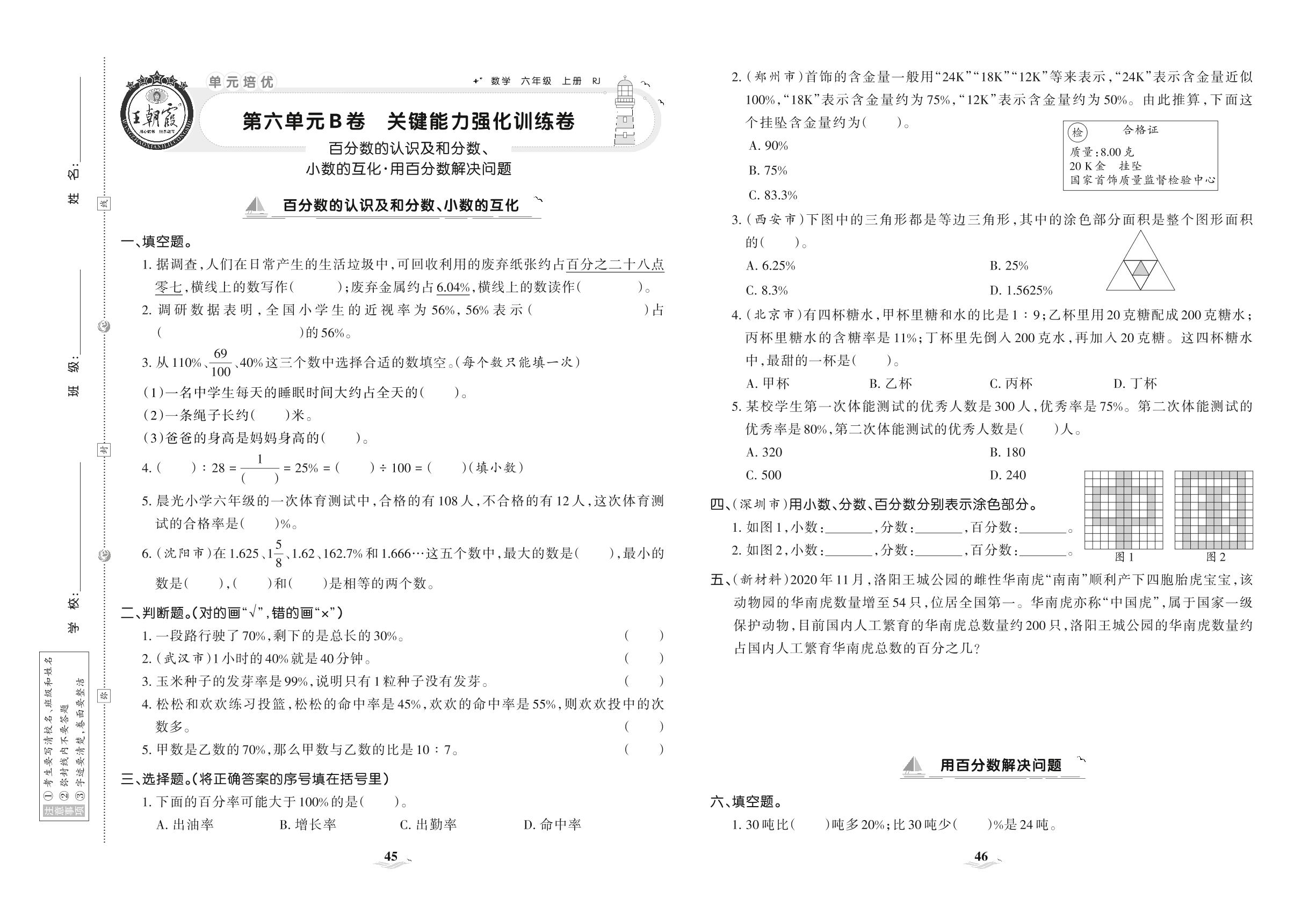 2021上册六年级数学人教版 第六单元B卷 关键能力强化训练卷