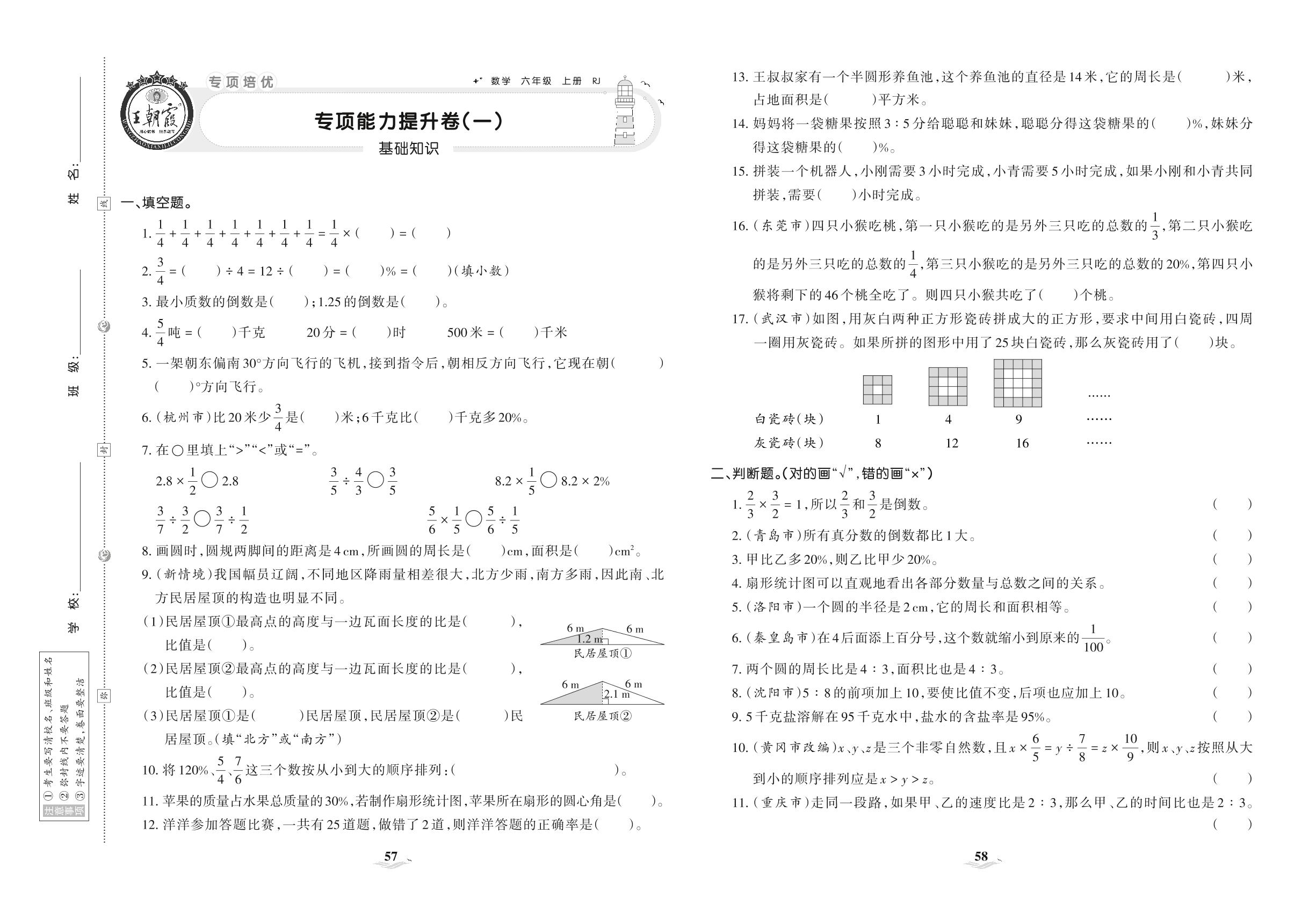 2021上册六年级数学人教版 专项能力提升卷(一) 基础知识