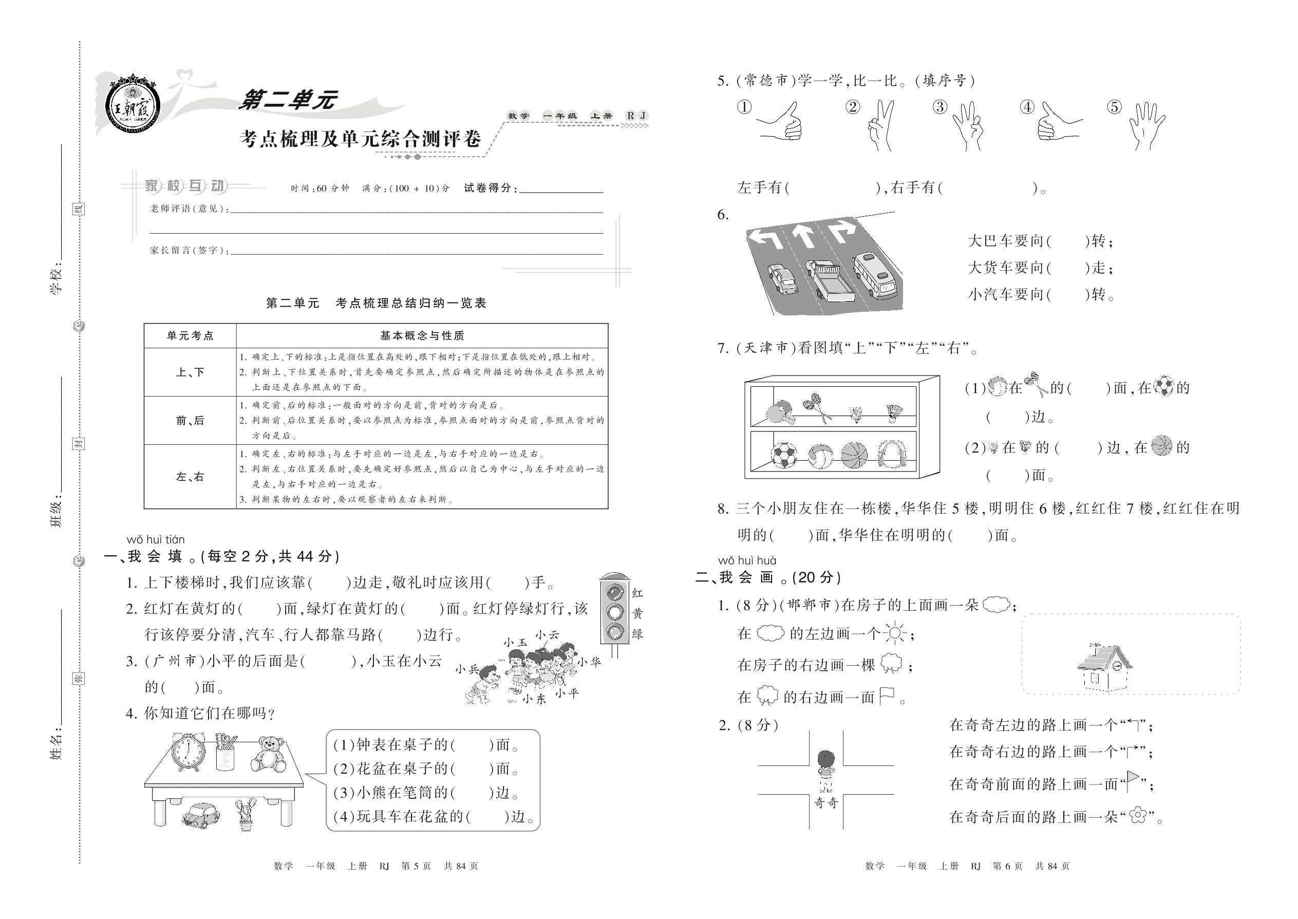 2021上册一年级数学人教版 第二单元 考点梳理及单元综合测评卷