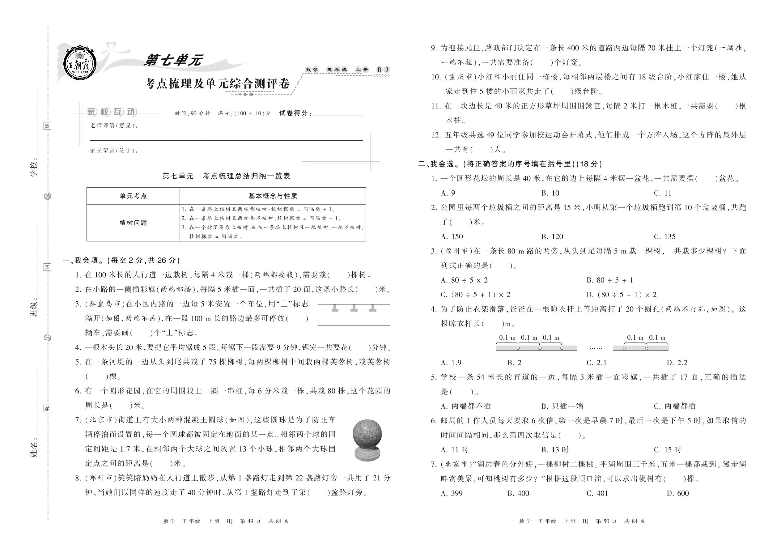 2021上册五年级数学人教版 第七单元 考点梳理及单元综合测评卷