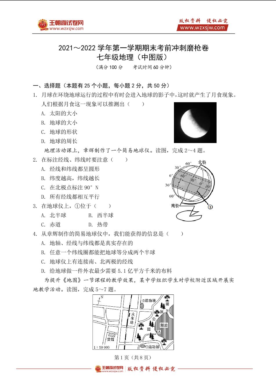 2021~2022学年第一学期期末考前冲刺磨枪卷 七年级地理(中图版)