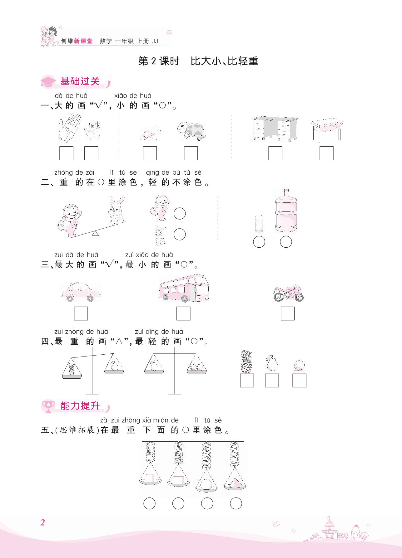 2021上册一年级数学冀教版 一 比一比——第2课时 比大小、比轻重