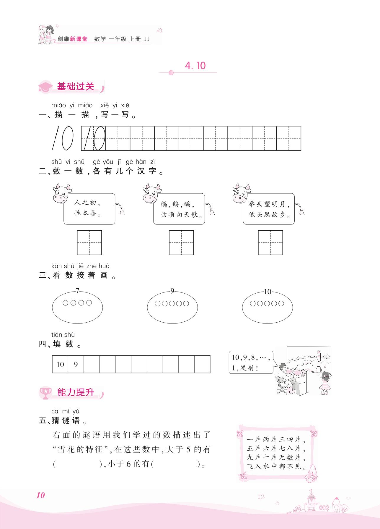 2021上册一年级数学冀教版 二 10以内数的认识 4. 10