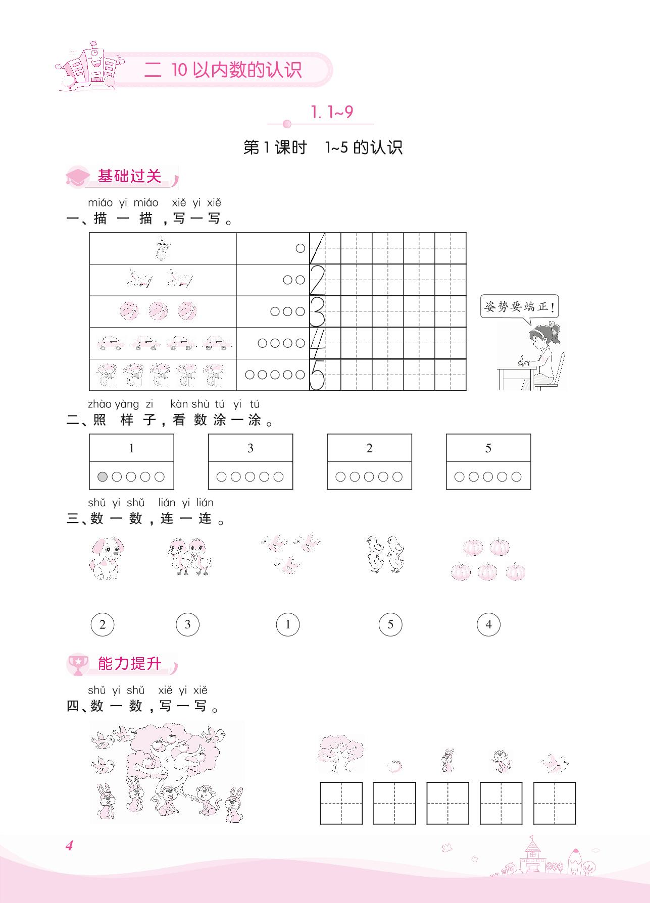 2021上册一年级数学冀教版 二 10以内数的认识 1. 1~9——第1课时 1~5的认识