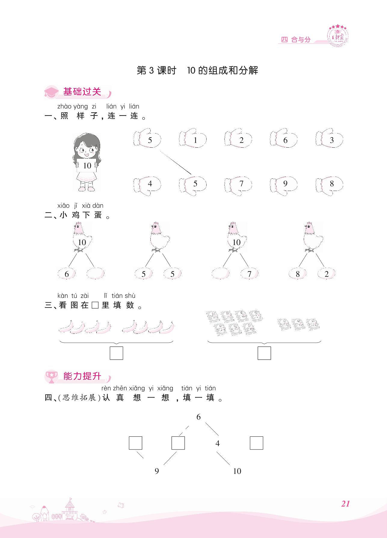 2021上册一年级数学冀教版 四 合与分——第3课时 10的组成和分解