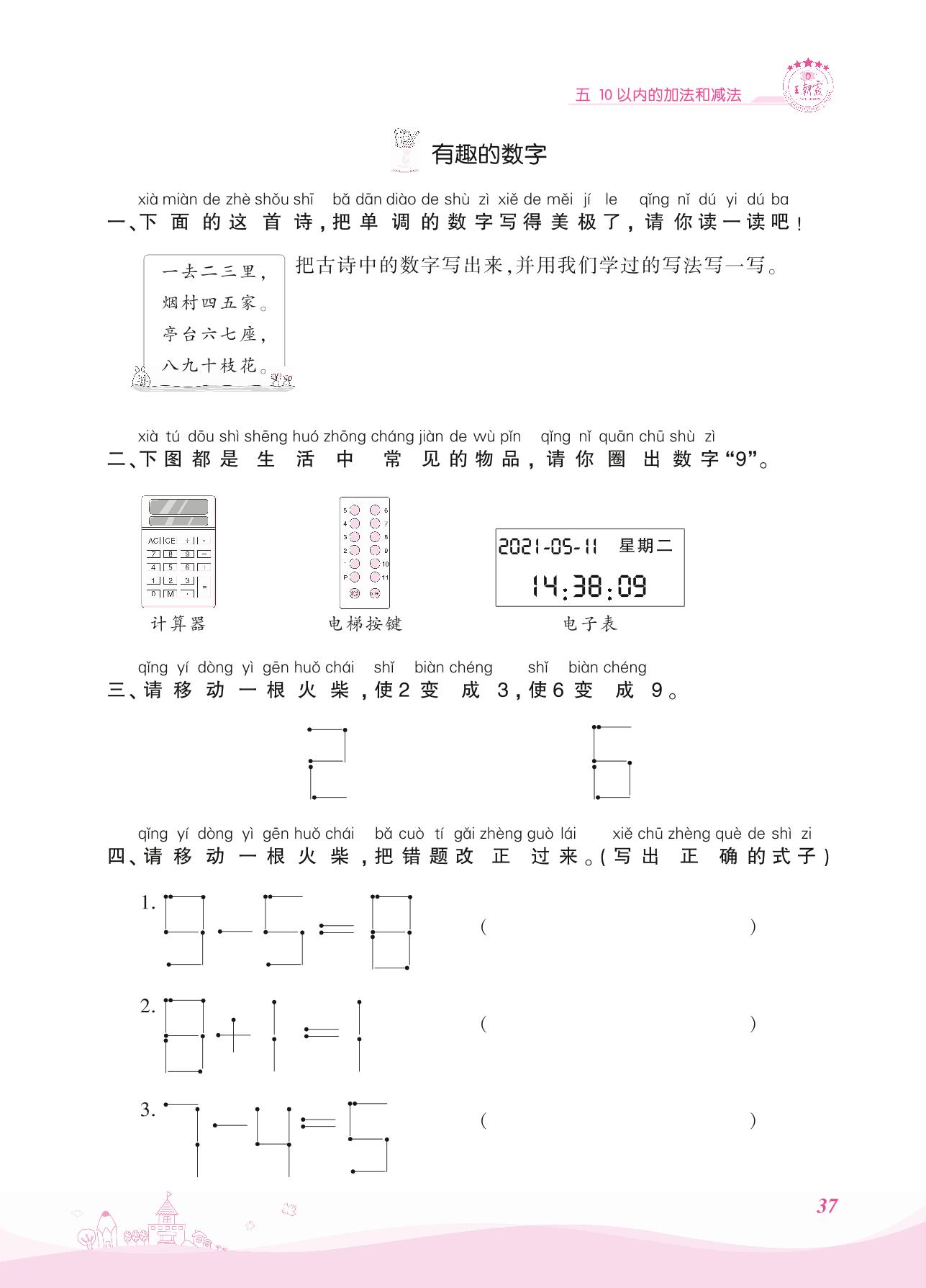 2021上册一年级数学冀教版 五 10以内的加法和减法——有趣的数字