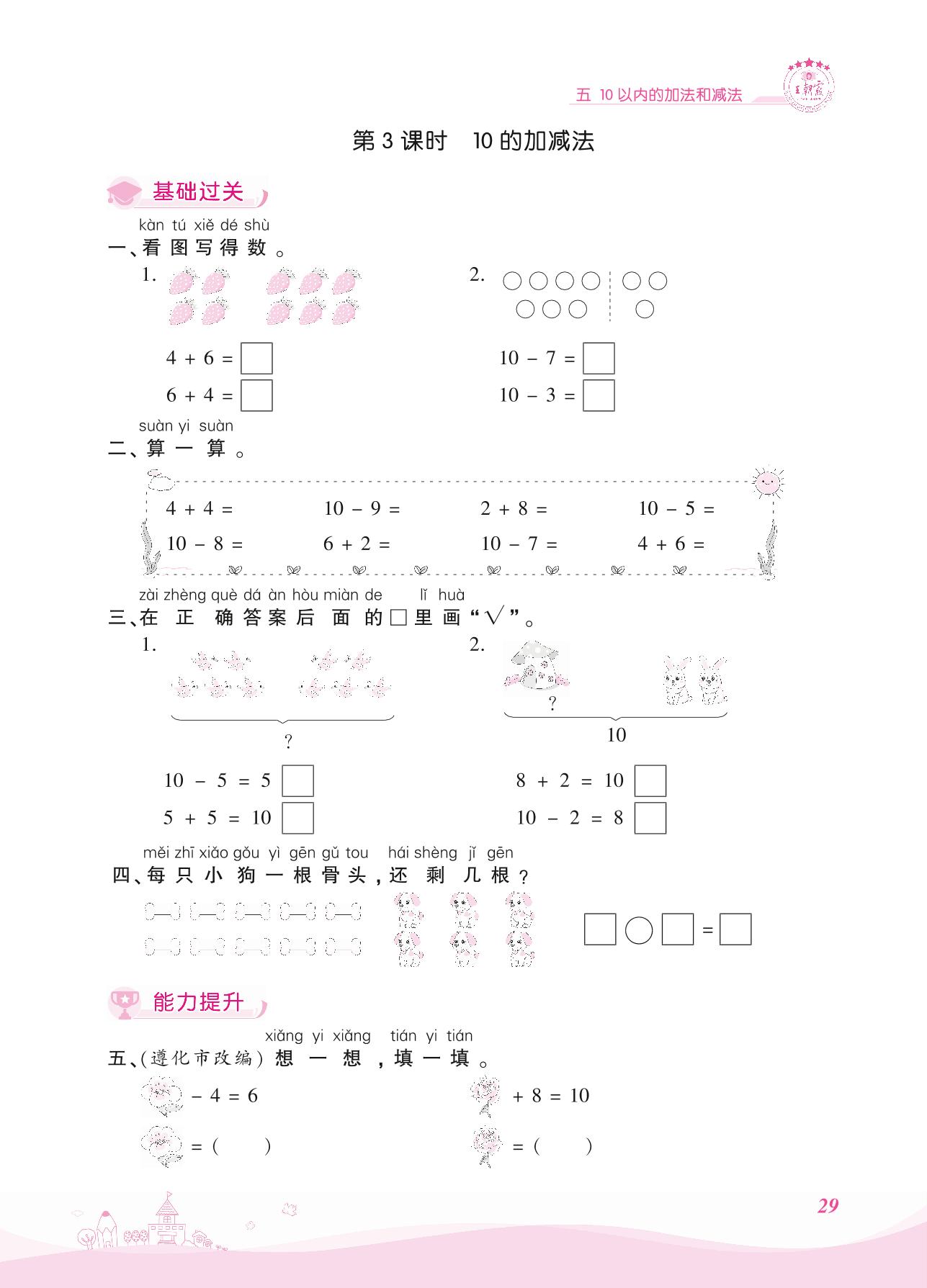 2021上册一年级数学冀教版 五 10以内的加法和减法 2. 6~10的加减法——第3课时 10的加减法