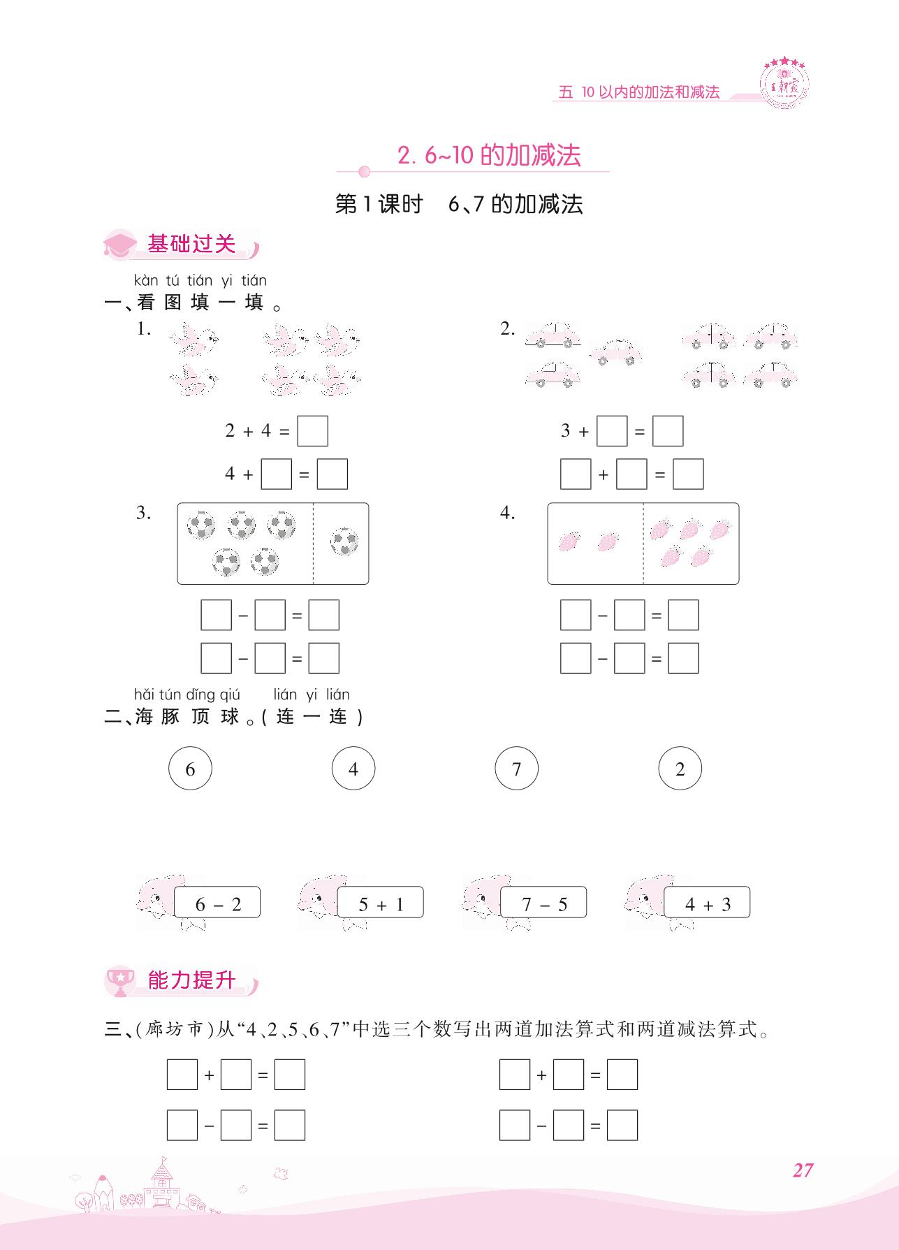 2021上册一年级数学冀教版 五 10以内的加法和减法 2. 6~10的加减法——第1课时 6、7的加减法