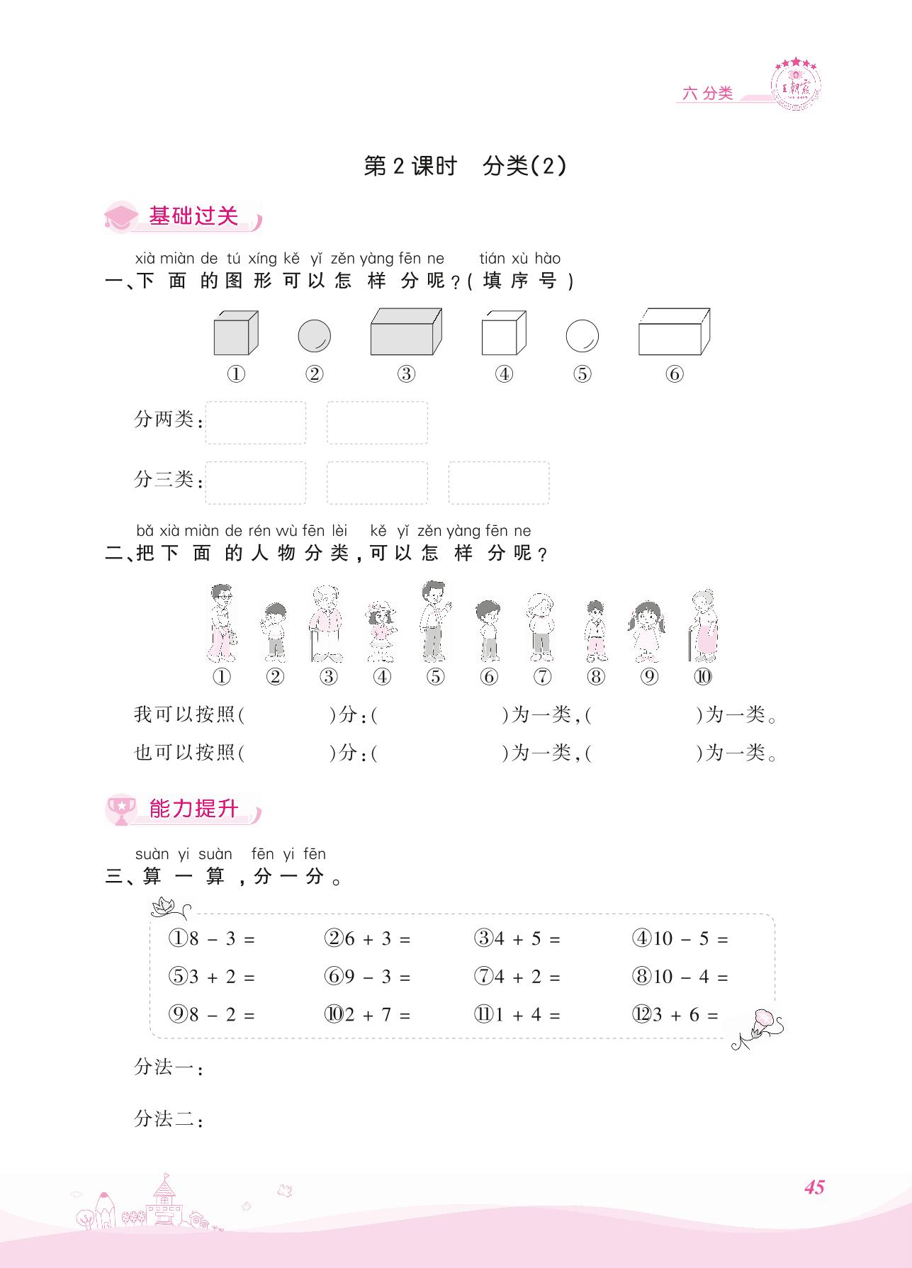 2021上册一年级数学冀教版 六 分类——第2课时 分类(2)