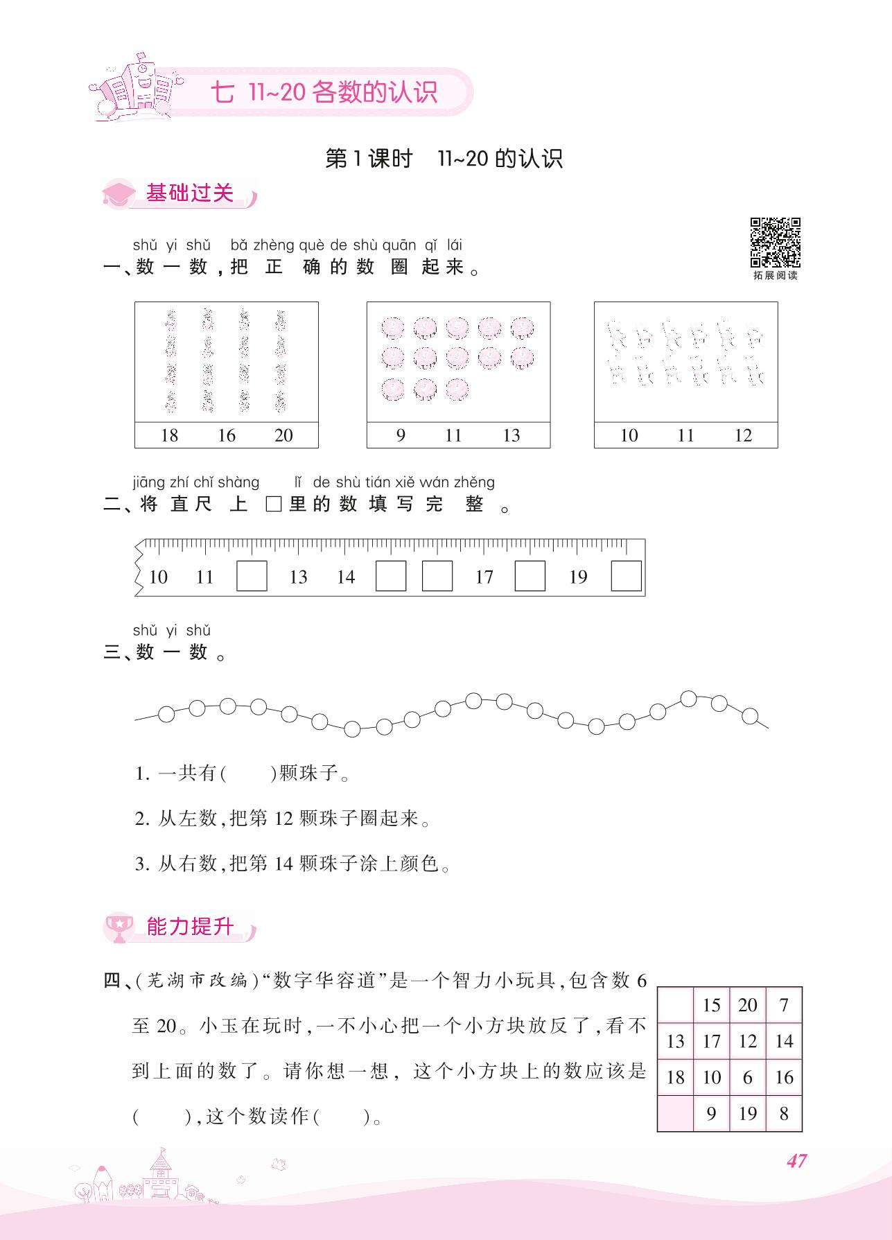 2021上册一年级数学冀教版 七 11~20各数的认识——第1课时 11~20的认识