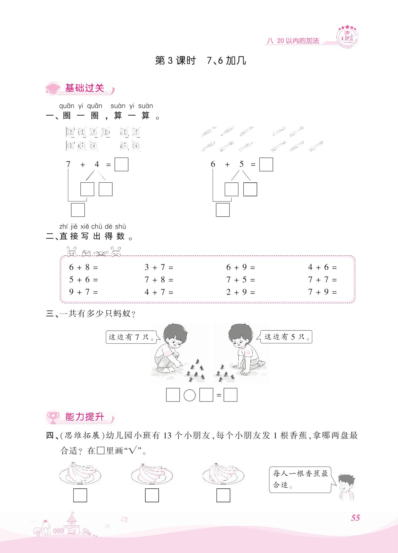 2021上册一年级数学冀教版 八 20以内的加法 2. 进位加法——第3课时 7、6加几