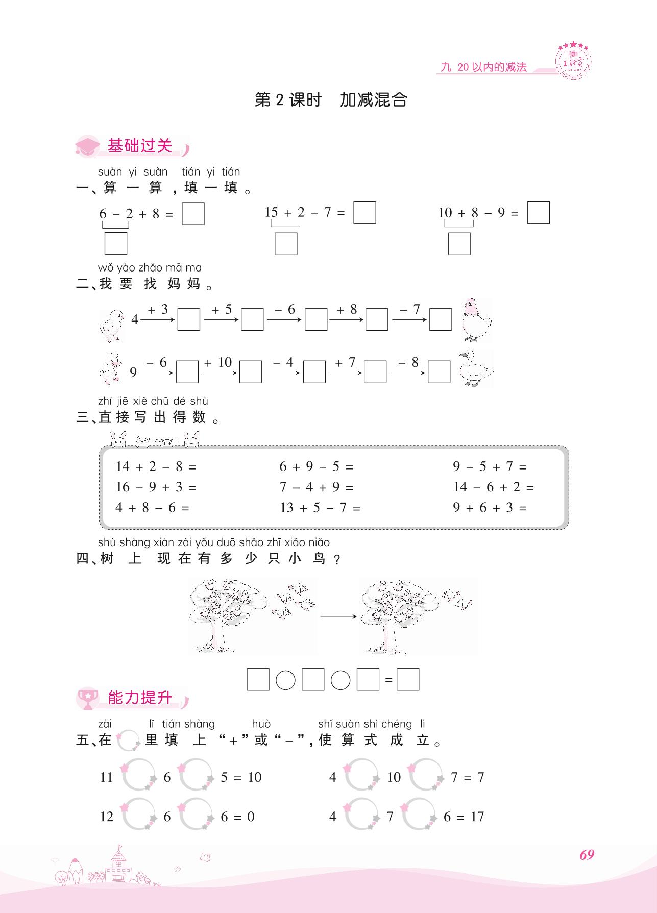 2021上册一年级数学冀教版 九 20以内的减法 3. 连减、加减混合——第2课时 加减混合