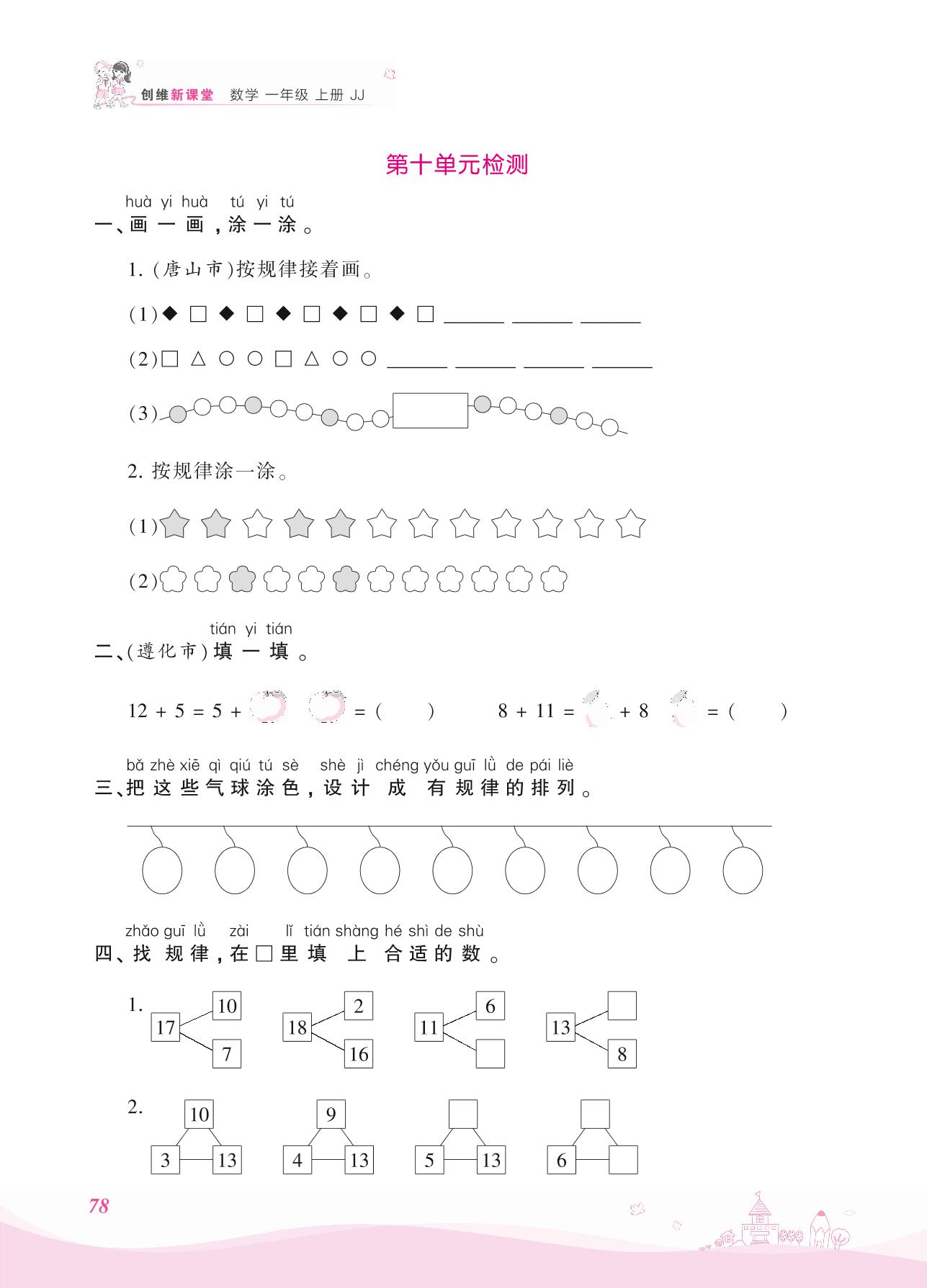2021上册一年级数学冀教版 十 探索乐园——第十单元检测