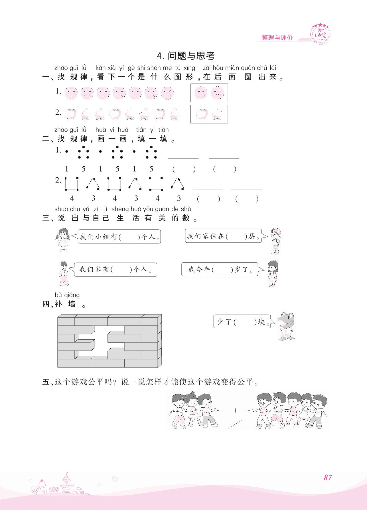 2021上册一年级数学冀教版 整理与评价——4. 问题与思考