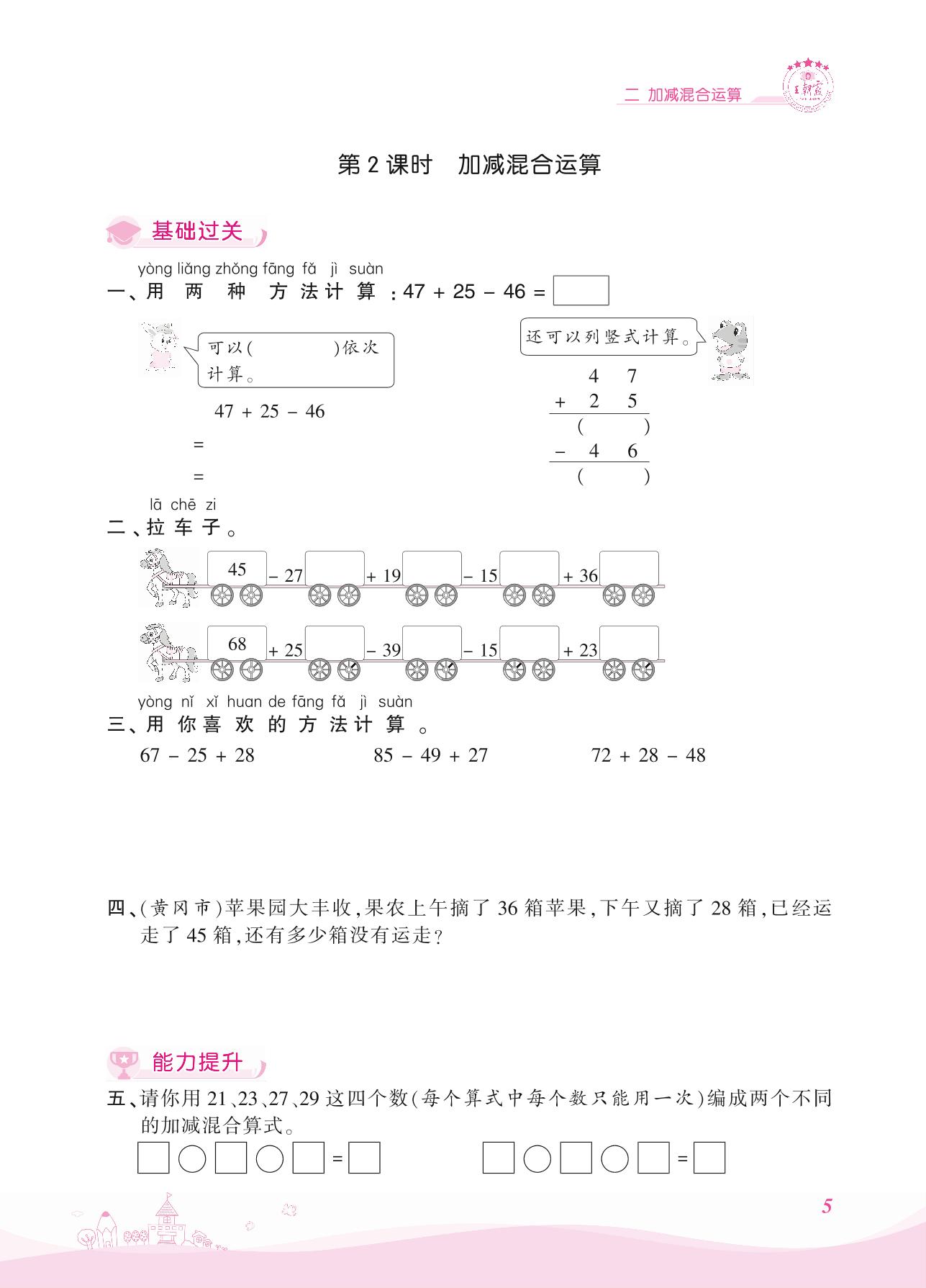 2021上册二年级数学冀教版 二 加减混合运算——第2课时 加减混合运算