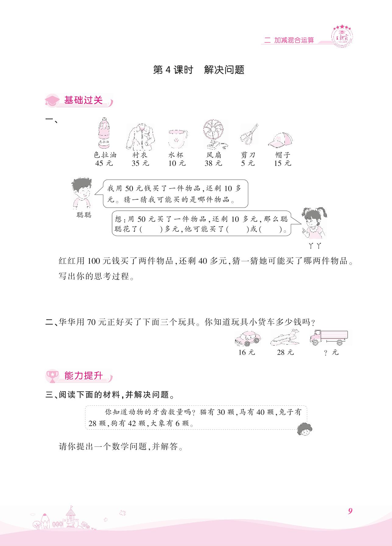 2021上册二年级数学冀教版 二 加减混合运算——第4课时 解决问题