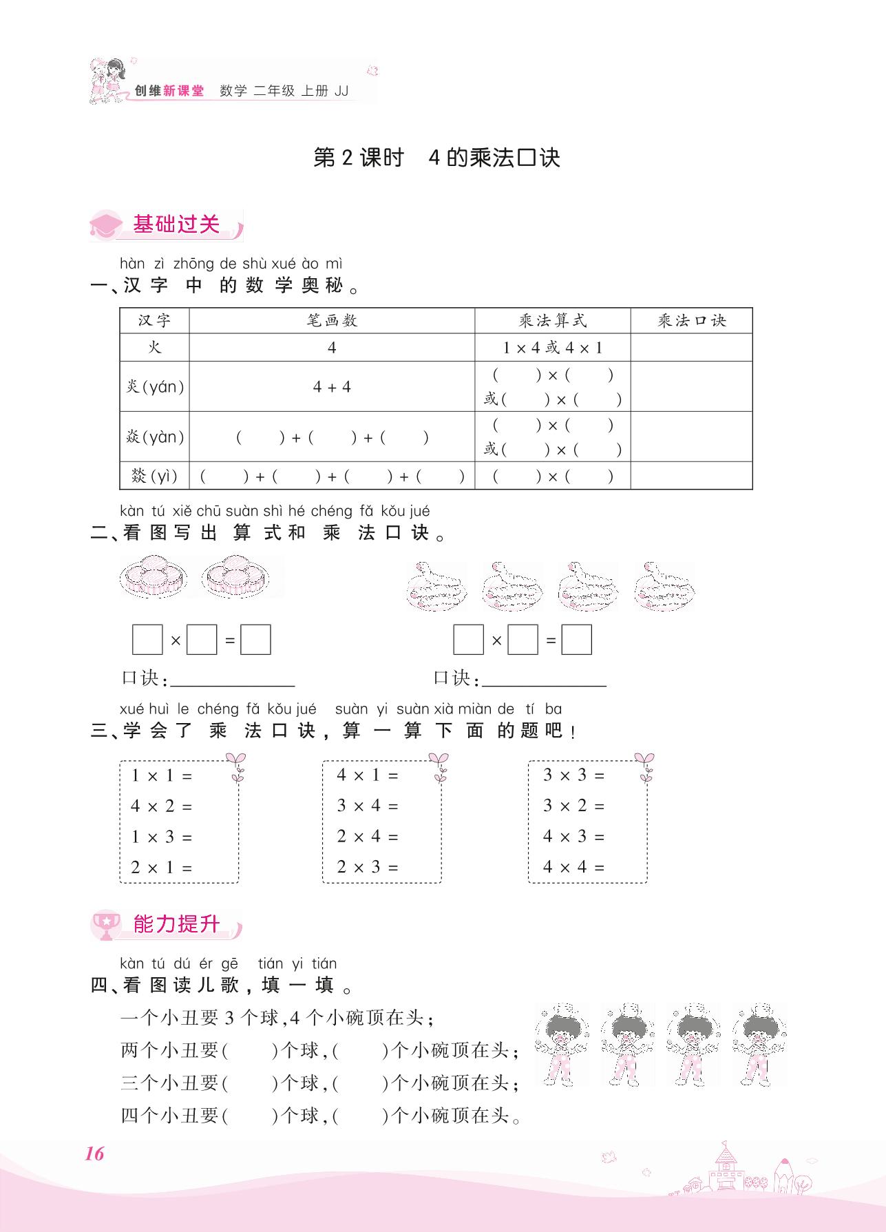 2021上册二年级数学冀教版 三 表内乘法(一) 2. 2~6的乘法口诀——第2课时 4的乘法口诀