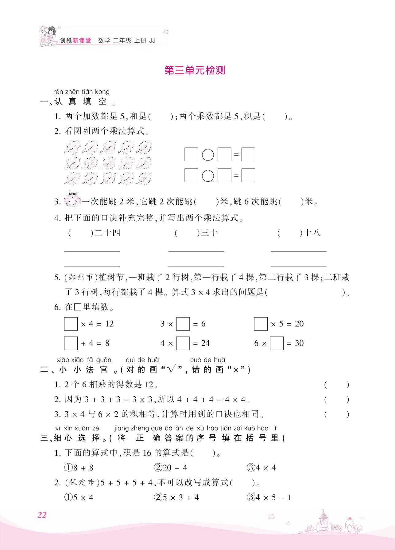 2021上册二年级数学冀教版 三 表内乘法(一)——第三单元检测