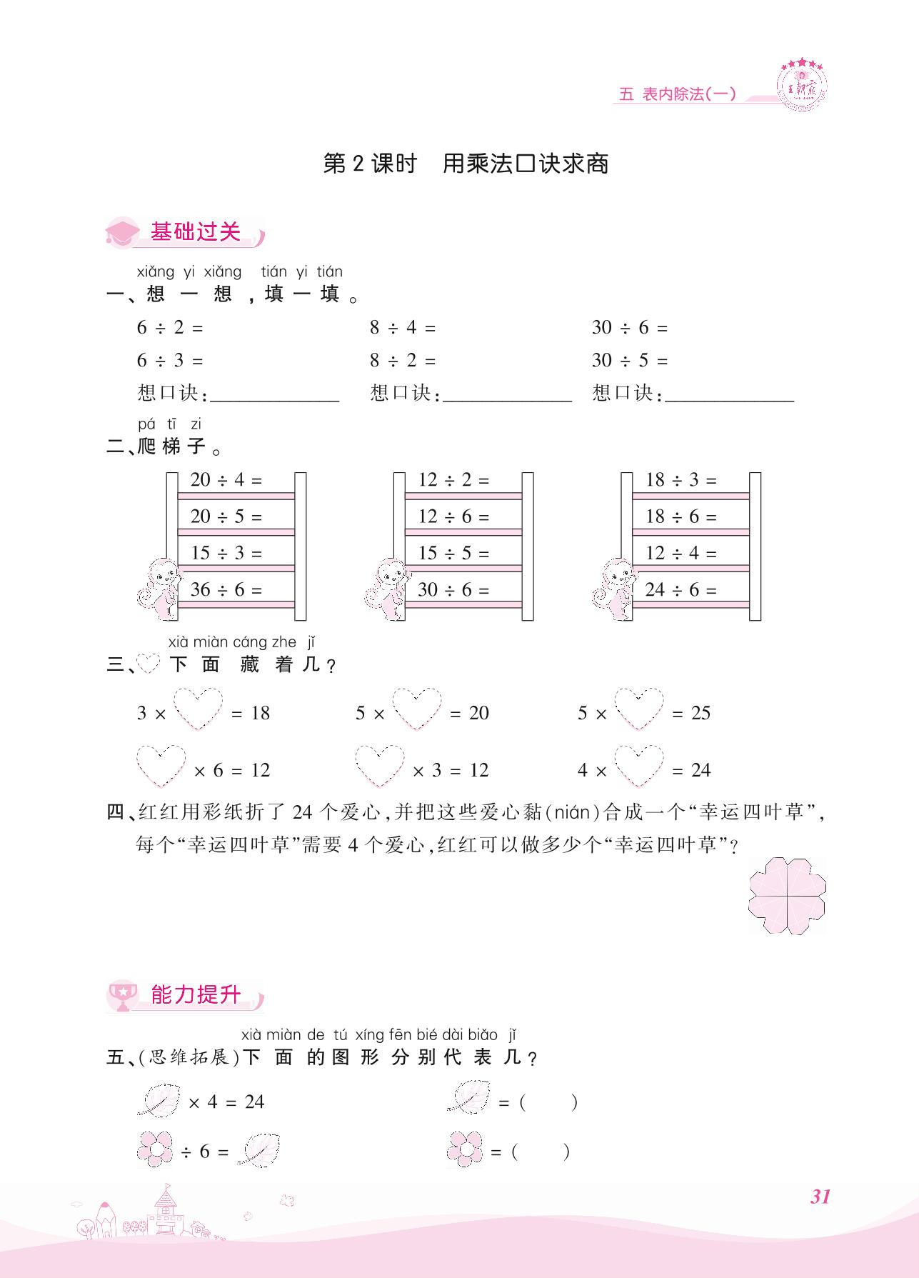 2021上册二年级数学冀教版 五 表内除法(一) 2. 用2~6的乘法口诀求商——第2课时 用乘法口诀求商